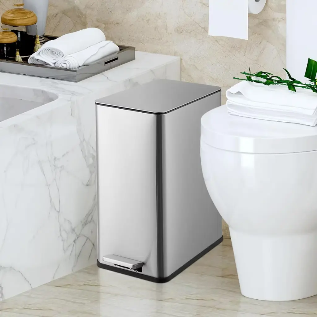 4 Gallon Step Trash Can With Soft-close Lid, 15l Slim Rectangle Garbage Can With Removable Inner Bucket
