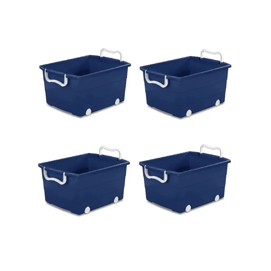 4 Pack Kids Rolling Toy Storage Bin With Handles, Blue