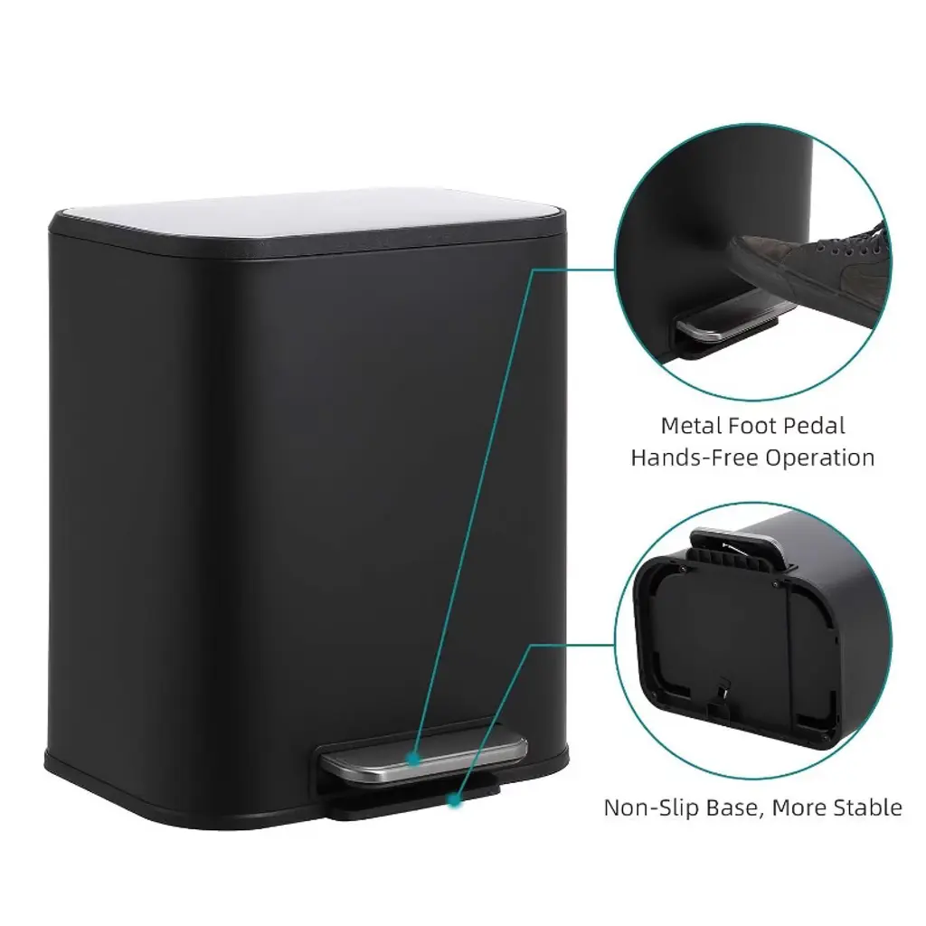 5.3 Gallon Kitchen Trash Can with Lid, Stainless Steel Garbage Can with Foot Pedal & Removable Inner Bucket, Rectangular Step On Waste Bin for Office Bedroom Living Room