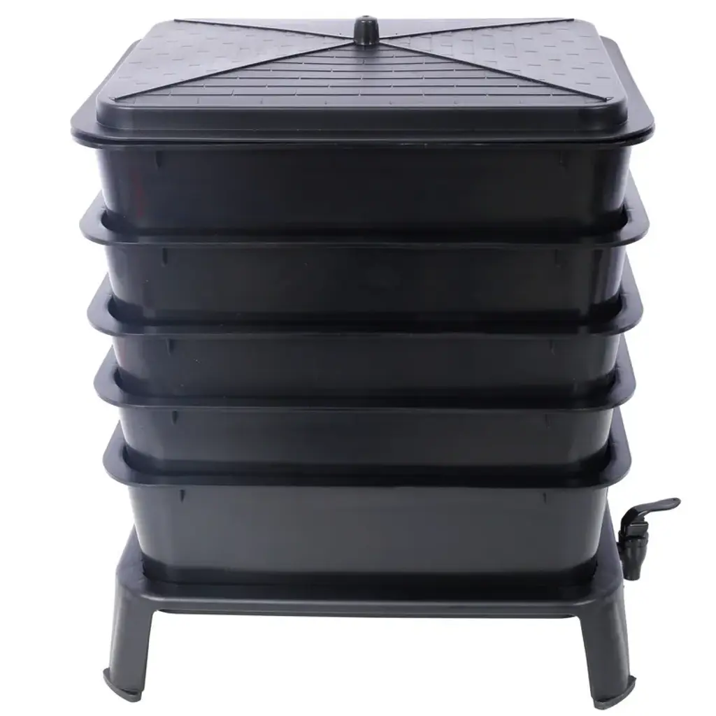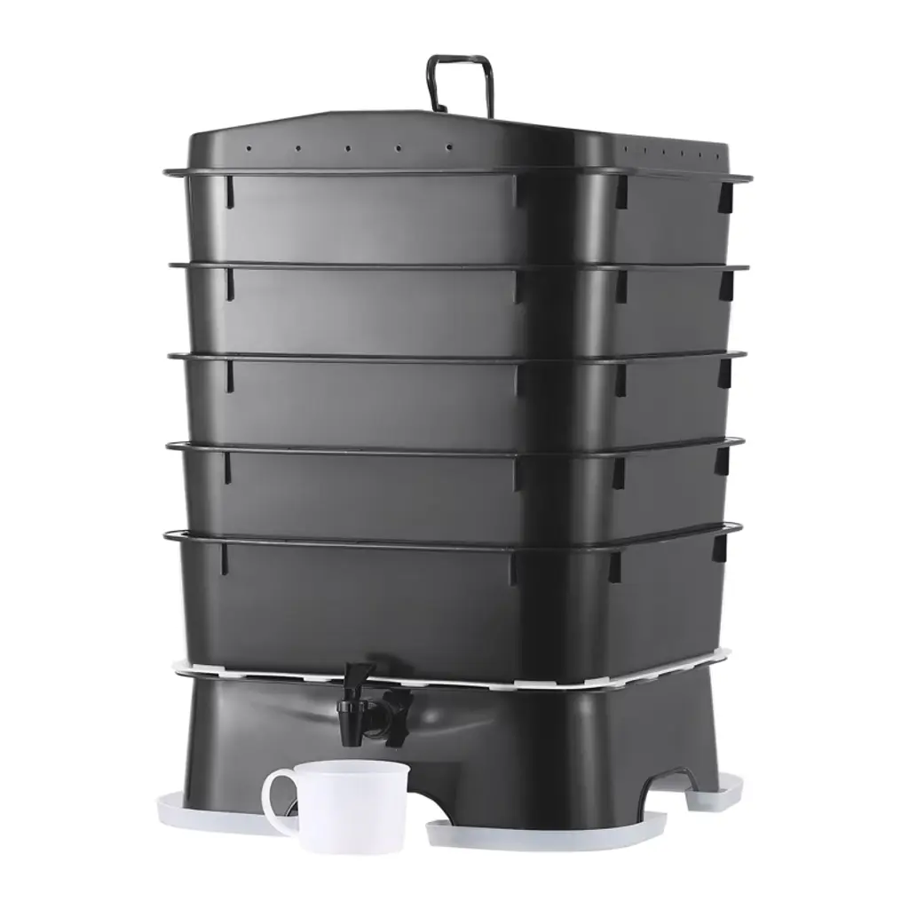 5-Layer Worm Compost Bin, 50l Worm Composter, Easy Setup Inclusive Worm Farm Kit For Recycling Food Waste - Plastic