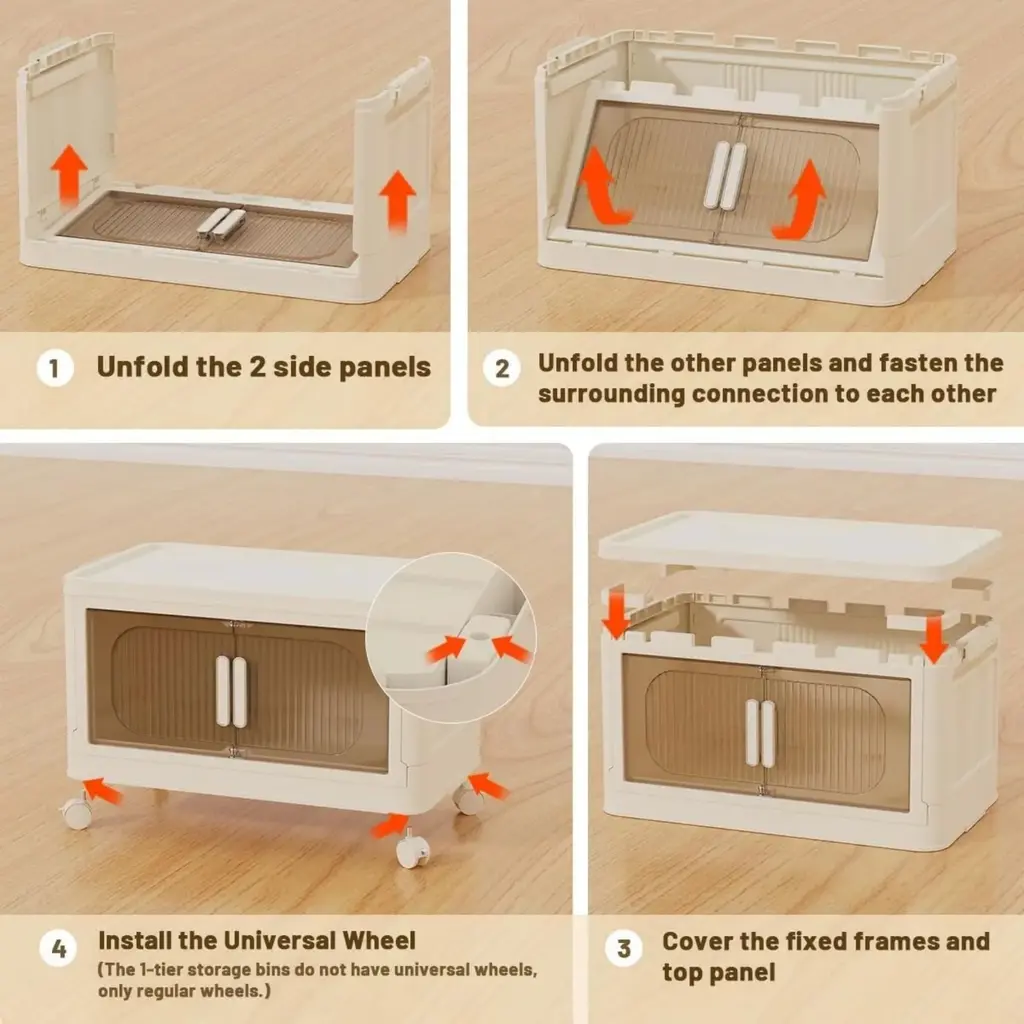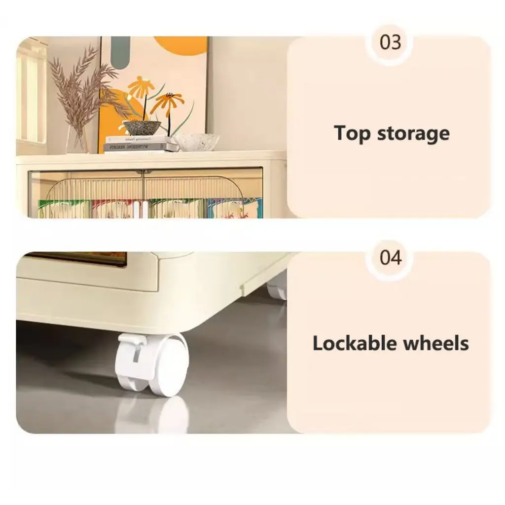 50 In. H Cream White Plastic Folding Storage Cabinet With Wheels 5-Tier Collapsible Storage Bins With Magnetic Door - Cream White