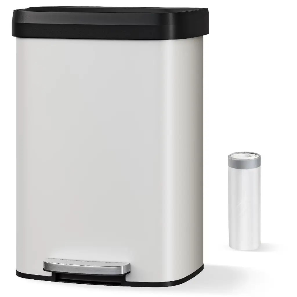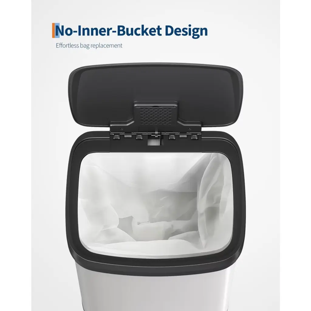 Elevate your daily routine with a trash can that combines sophisticated design with unmatched practicality. This kitchen trash can is meticulously crafted to solve your pain points of clutter, mess, and frequent replacements, offering a seamless blend of style and durability for a more organized and refined home.• Sleek Space-Saving Design - Expertly sized to tuck neatly under standard 36-inch island countertops, freeing up your valuable floor space and creating a more open, streamlined kitchen layout.• Built-to-Last Construction - Featuring a rust and scratch-resistant powder-coated metal body and a durable ABS lid, it stands up to daily wear. The industrial-grade pedal guarantees reliable performance for years to come.• Effortless Cleanliness - The fingerprint-resistant finish wipes clean easily, while the integrated liner rim hides bag edges for a seamless look. Anti-slip feet protect your tile, hardwood, or carpet floors from scratches.• Smart Hands-Free Operation - The soft-close lid opens smoothly without hitting cabinets and can be locked open for convenient hands-free disposal during meal prep, making your cooking workflow more efficient.• Versatile Home Integration - Its cohesive, modern aesthetic allows it to blend beautifully into laundry rooms, home offices, or coffee bars, effectively concealing clutter while maintaining a high-end look throughout your home.Choosing this trash can means investing in a smarter, more stylish way of living. It's the silent, reliable helper that enhances every corner of your home, delivering lasting performance and a consistently tidy environment so you can focus on enjoying your space.