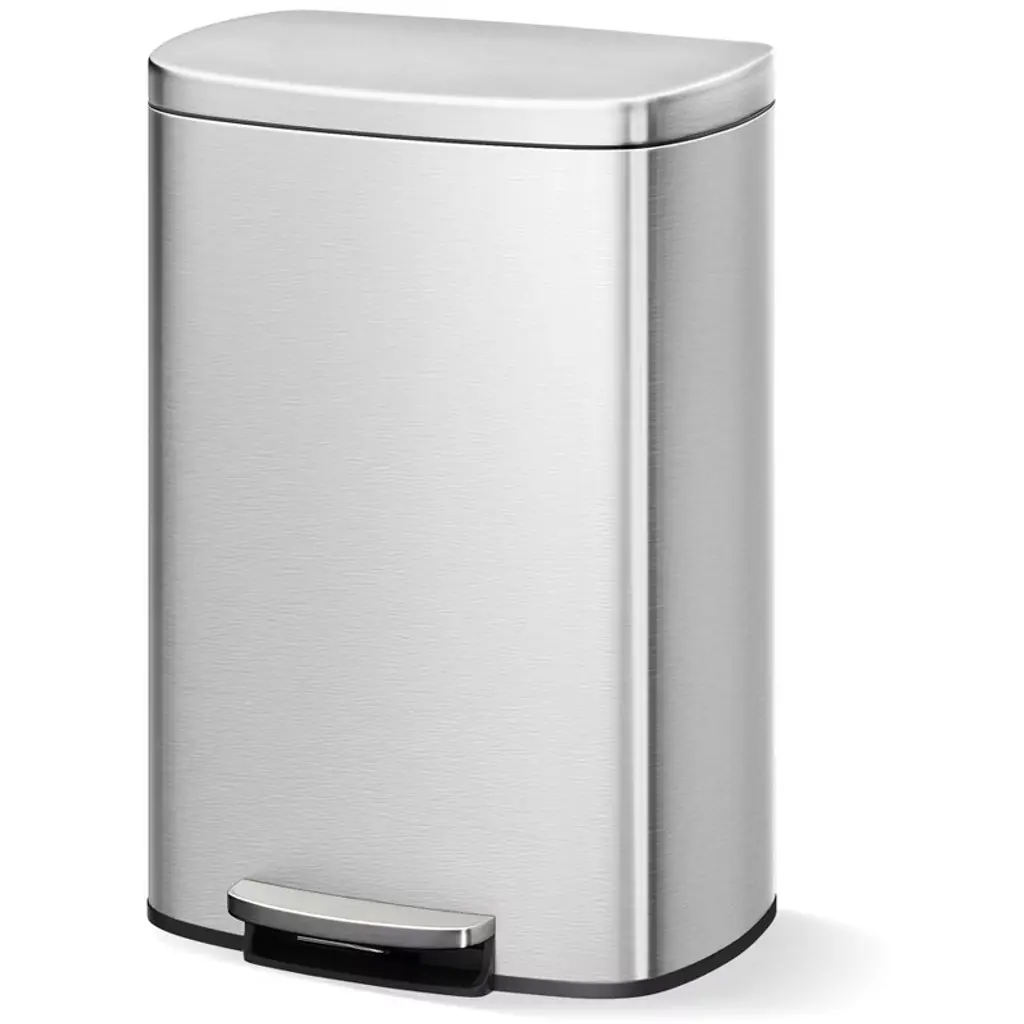 Discover the blend of cleanliness and convenience for your modern home. This 50L oval rectangular step trash can combines elegant design, robust durability, and user-friendly features to eliminate clutter and odors, significantly enhancing your daily life.Product Details50L Capacity | Oval RectangularSlow-Close Lid | Odor-Sealing410 Stainless Steel | 0.4mm ThicknessPP Inner Bucket | PP Base | RemovableFoot Pedal | Hands-Free OperationProduct Features:【Space-Saving Elegant Design】Its unique oval rectangular profile fits snugly against cabinets or in corners, maximizing space efficiency in your kitchen, bathroom, or office. The sleek brushed stainless steel finish resists fingerprints and scratches, maintaining a like-new appearance with minimal effort.【Quiet & Odor-Controlled Operation】Experience peace with the slow-closing lid that descends silently without loud bangs. The tight-sealing cap effectively traps odors inside and prevents pests, ensuring a fresher and more hygienic environment in your kitchen or powder room.【Premium & Durable Construction】Crafted from 410-grade stainless steel with a 0.4mm thickness, the main body offers exceptional sturdiness and resistance to dents. The high-quality PP inner bucket and base are built to last, providing reliable anti-corrosion and rust-proof performance for years of use.【Hygienic & Effortless Cleaning】The responsive foot pedal allows for completely hands-free operation, perfect for keeping hands clean during food prep. The removable inner bucket makes disposal and rinsing a quick, mess-free task, saying goodbye to sticky hands and stubborn grime.Elevate your waste management with this high-capacity, silent-closing, and built-to-last trash can. Invest in lasting tidiness and effortless convenience for your home.