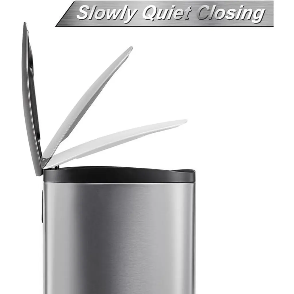 Sturdy & Practical: Our kitchen trash cans are crafted from high-quality stainless steel with a brushed finish, providing a waterproof and rust-resistant surface that also helps prevent fingerprints. The lid is designed for easy operation with a foot pedal, allowing you to open it at various angles based on the pressure applied, making it both convenient and practical for daily disposal needs. Wide Application: Our automatic trash can is designed to seamlessly integrate into nearly any environment. Whether it's positioned in the kitchen, bedroom, bathroom, office, or study, this trash can provides an effective and aesthetically pleasing solution for waste disposal.