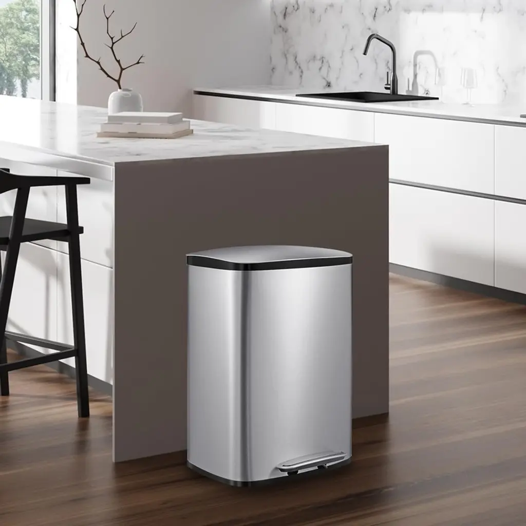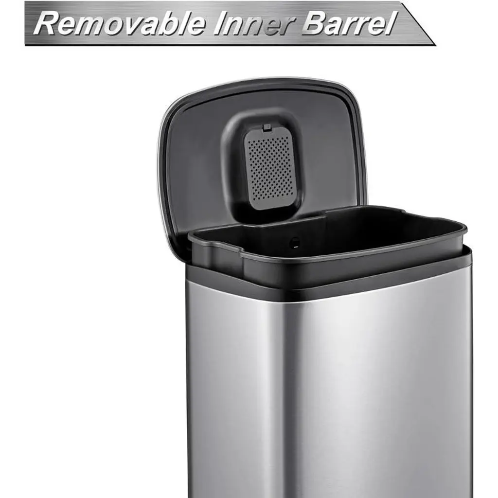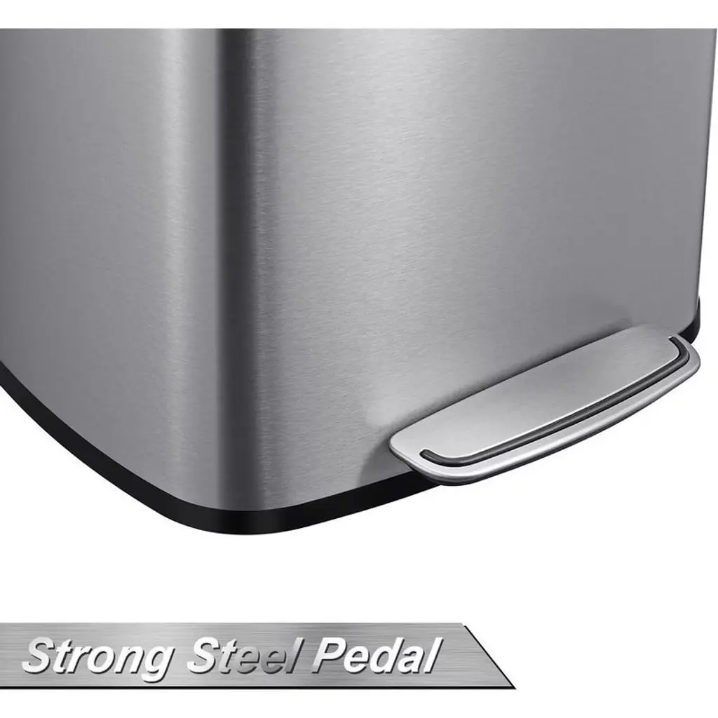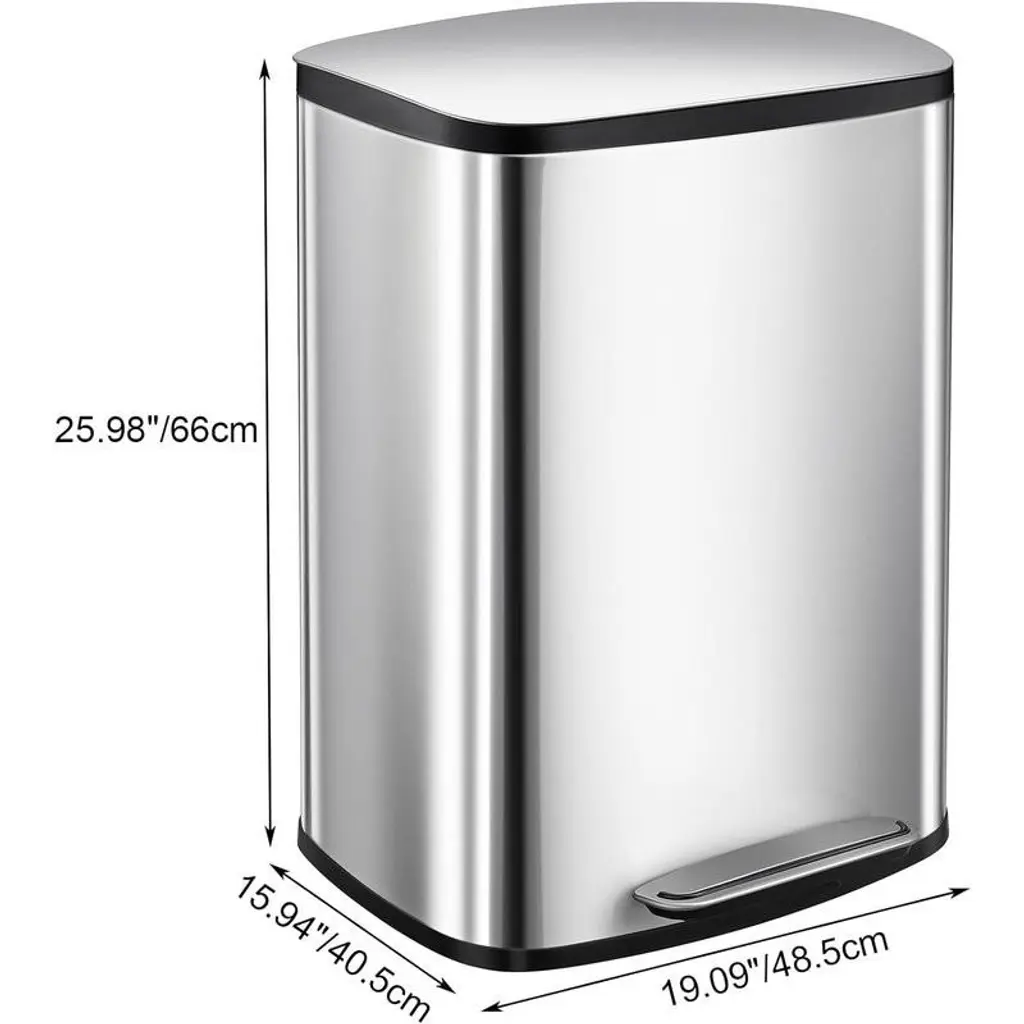 50l/13gal Pedal Heavy Duty Hands-free Stainless Steel Kitchen Trash Can, Commercial Rectangular Kitchen Waste Bin, With Soft Close Lid & Inner Liner