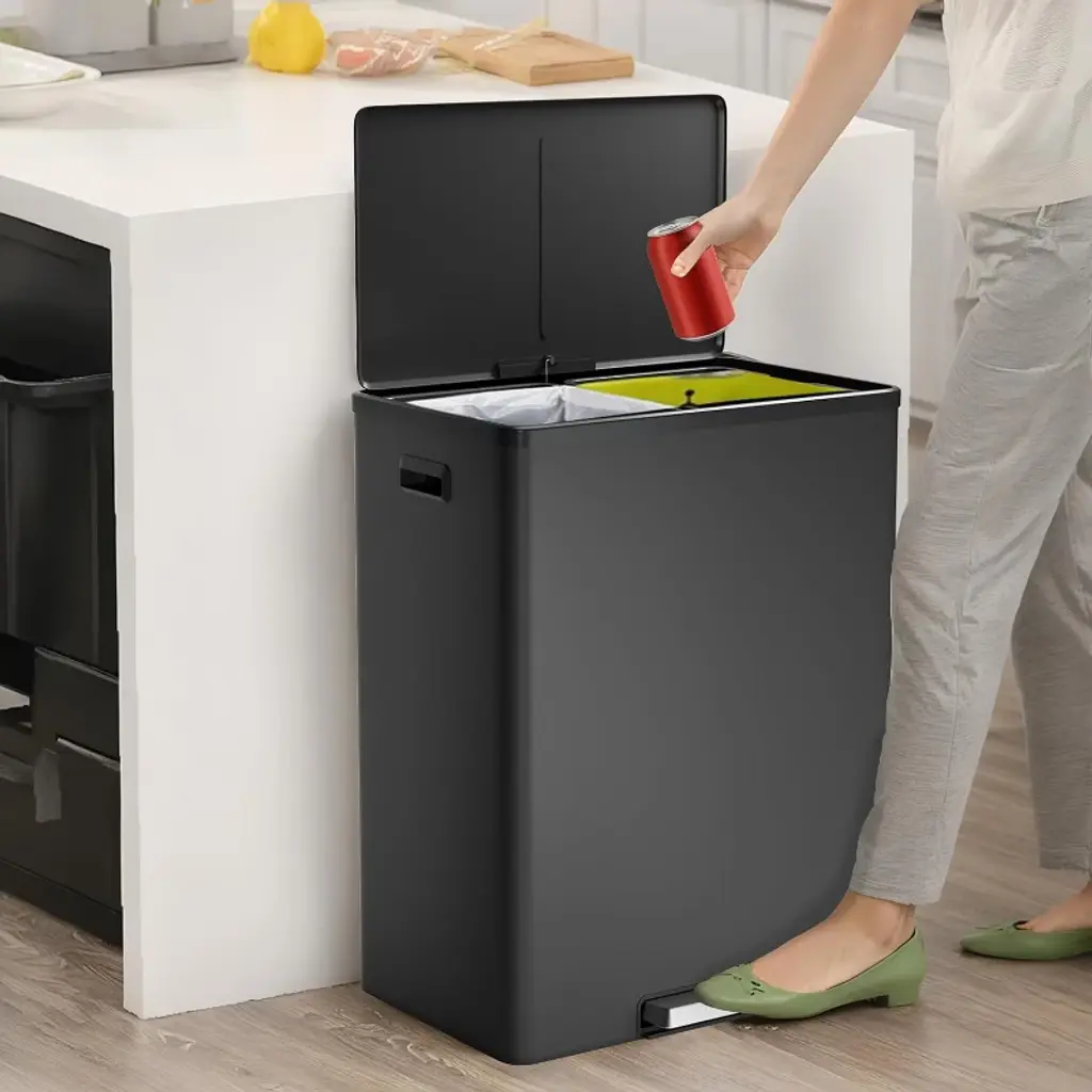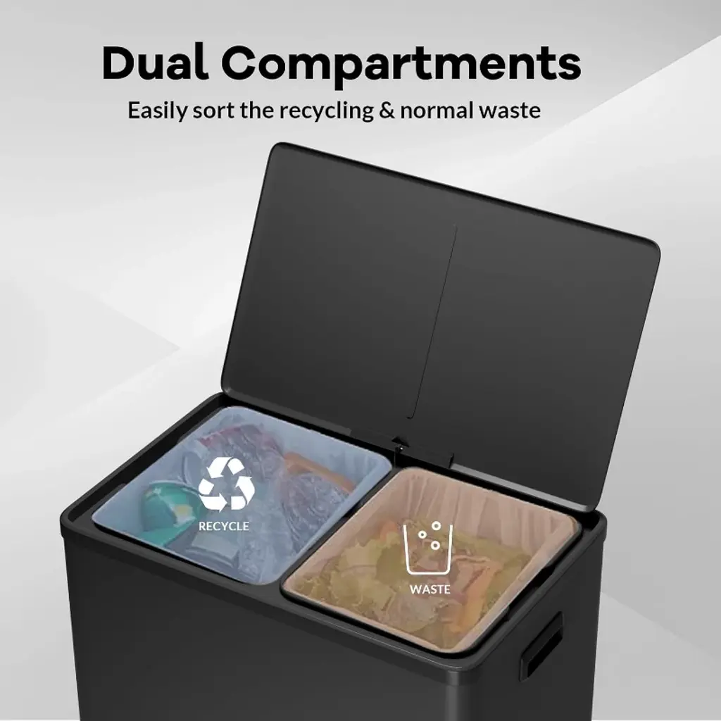 60L 16 Gallon Step Dual Trash Can with Lid, Large Stainless Steel Double Recycling Bin with 2 Removable Wastebaskets, for Kitchen, Bathroom, Home and Office