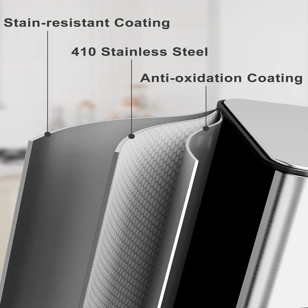 This sleek, stainless-steel trash can offers three 5.3-gallon compartments with soft-close, odor-sealing lids and hands-free pedal operation, making hygienic sorting of waste, recycling, and compost effortless in any kitchen, office, or commercial space.