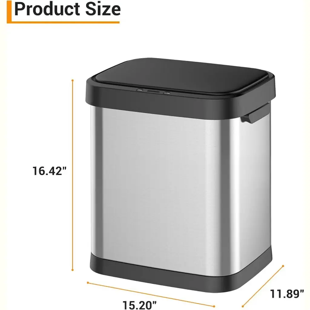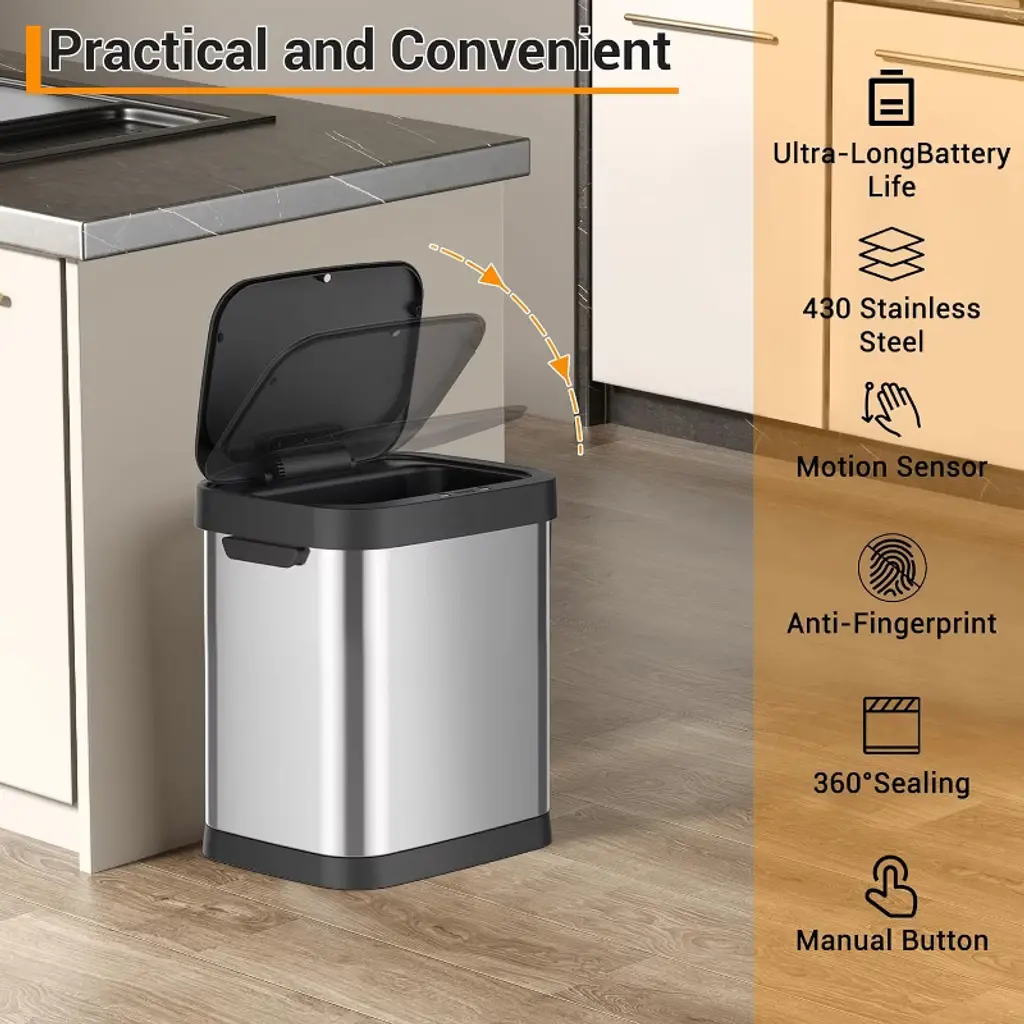 Motion Sensor Convenience: Equipped with a highly sensitive infrared sensor, this trash can detects motion within 25 cm and opens automatically in just 0.3 seconds for true hands-free use. The lid closes after 5 seconds and will reopen if movement is detected during closing for added convenience. Stylish & Spacious: With a sleek brushed stainless steel design, this trash can holds up to 7.9 gallons (30L) and fits standard supermarket trash bags—perfect for everyday use in any room.