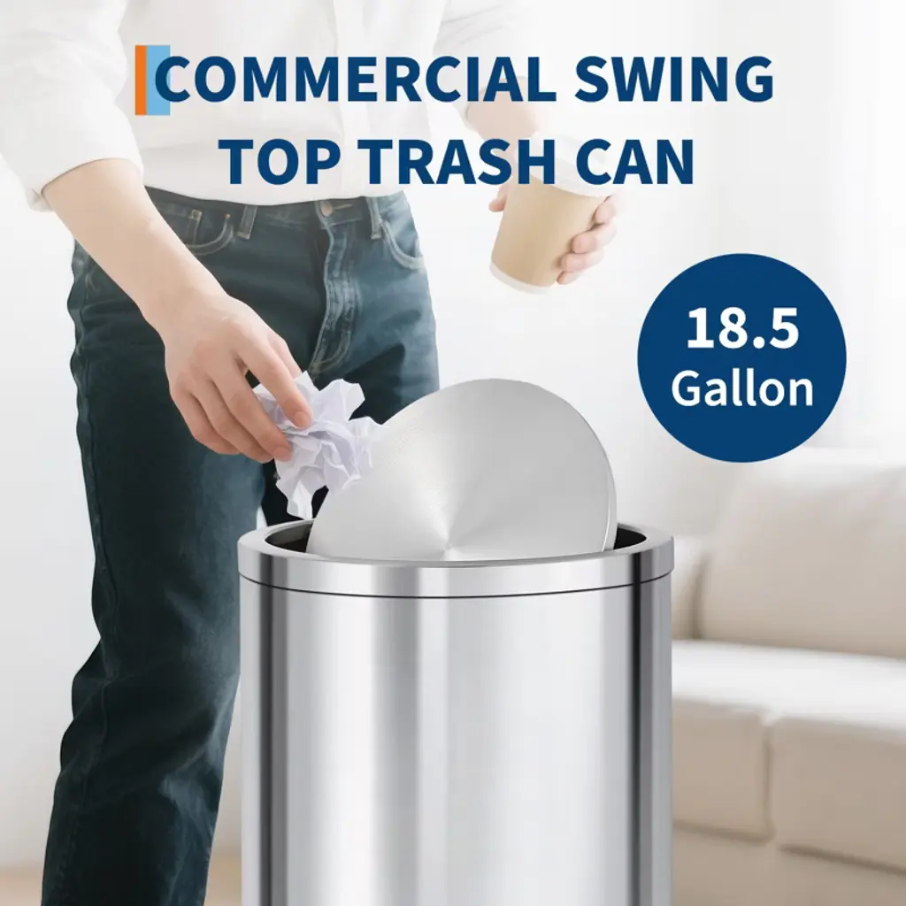 Featuring a stainless steel flipping lid with smooth 360-degree rotation and an automatic return mechanism, this trash can provides effortless disposal. The wide opening simplifies trash disposal and helps contain odors, making it ideal for high-traffic areas. Easily manage everyday kitchen waste with this large 13-gallon trash can, perfect for busy homes, offices, or hotels. Its ample size reduces the frequency of emptying, helping keep your space neat and efficient.