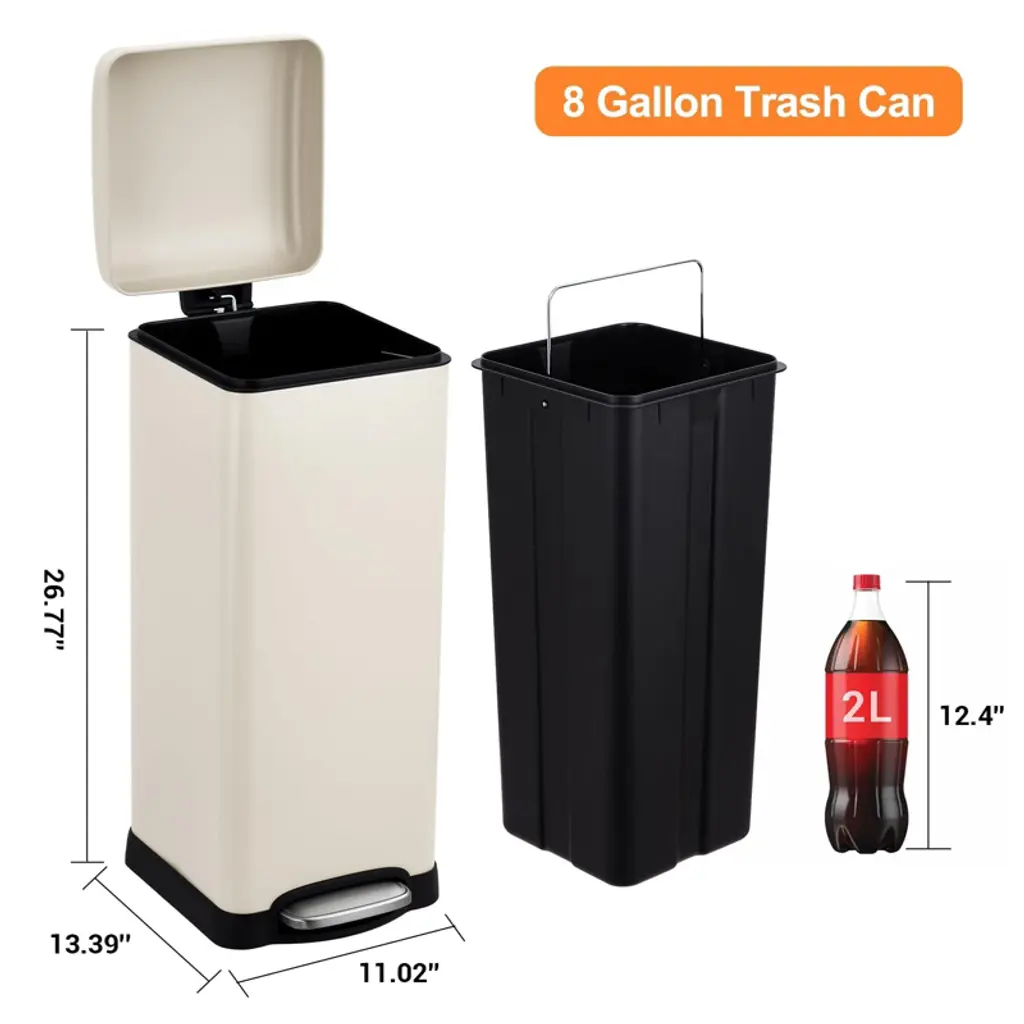 8 Gallon (30l) Step Trash Can, Stainless Steel Bathroom Garbage Can With Lid And Foot Pedal