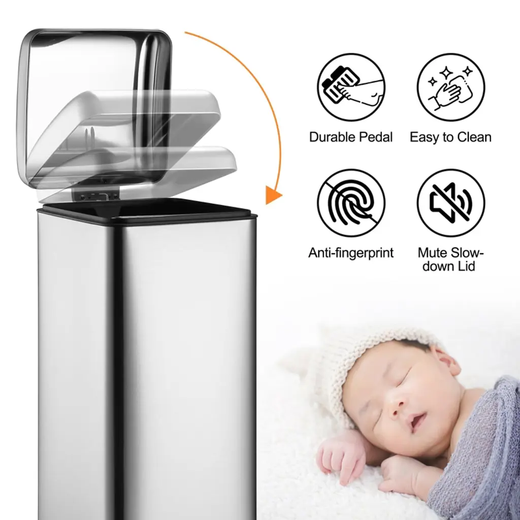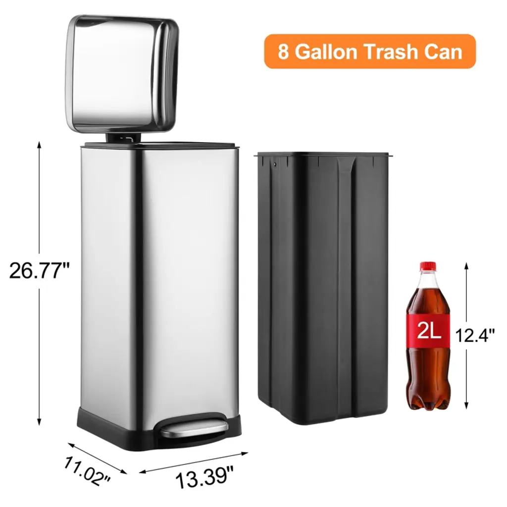 8 Gallon (30l) Step Trash Can, Stainless Steel Bathroom Garbage Can With Lid And Foot Pedal