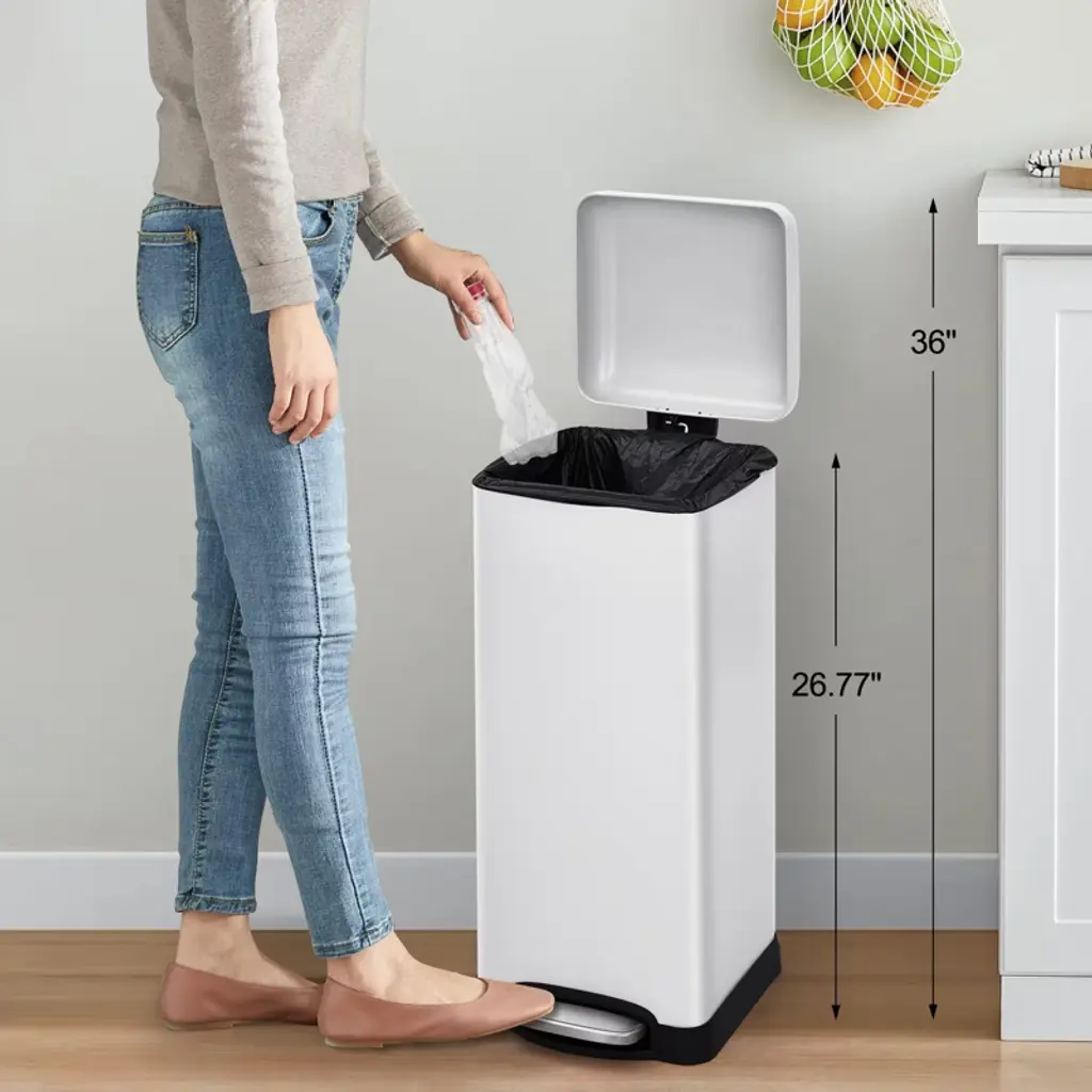 8 Gallon (30l) Step Trash Can, Stainless Steel Bathroom Garbage Can With Lid And Foot Pedal