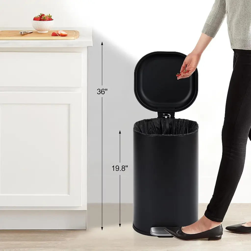 Hygienic Waste Disposal: The foot pedal design of the trash can allows for hands-free operation, promoting a more hygienic waste disposal process. By using your foot to open the lid, you can avoid direct contact with the trash can, reducing the risk of transfer and maintaining a cleaner environment in your home or public spaces. Space-Saving Solution: Despite its large 8-gallon capacity, this trash can is designed to have a compact footprint, making it a space-saving solution for kitchens, offices, or other areas with limited space. The efficient use of vertical space allows you to maximize waste storage capacity without taking up excess floor space. Enhanced Odor Control: The tight-sealing lid and advanced odor control system help to trap and contain unpleasant odors within the trash can, preventing them from spreading into the surrounding area. This feature creates a fresher and more pleasant environment, especially in high-traffic areas where odors can be a concern. Quiet and Discreet Operation: The trash can lid operates silently, ensuring that the opening and closing mechanism does not create disruptive noises. This quiet operation is ideal for maintaining a peaceful and undisturbed atmosphere, particularly in settings where noise levels need to be minimized, such as offices or residential spaces. Versatile Usage: This stainless steel trash can is suitable for a variety of settings, including homes, offices, hotels, restaurants, and public spaces. Its versatile design and hygienic foot pedal operation make it a practical and convenient waste disposal solution for various environments, promoting cleanliness and a healthier living or working environment.