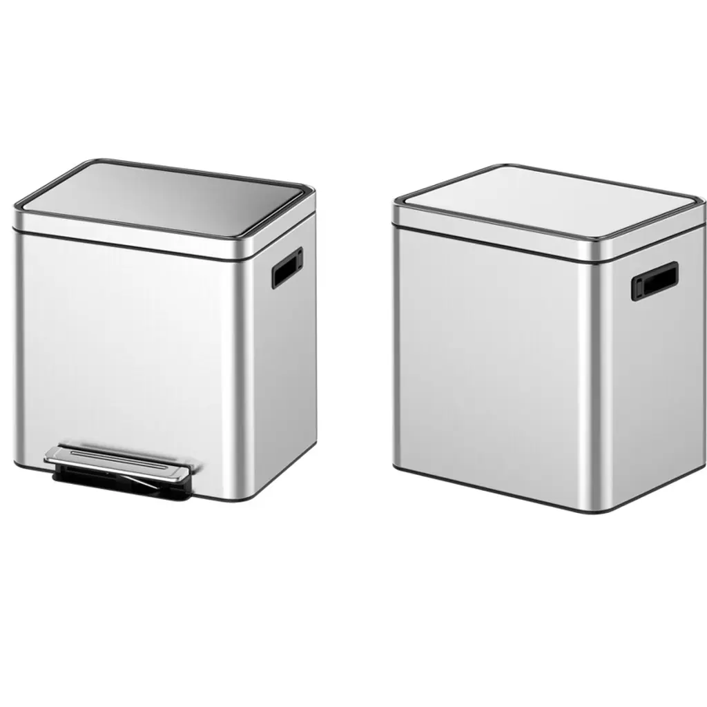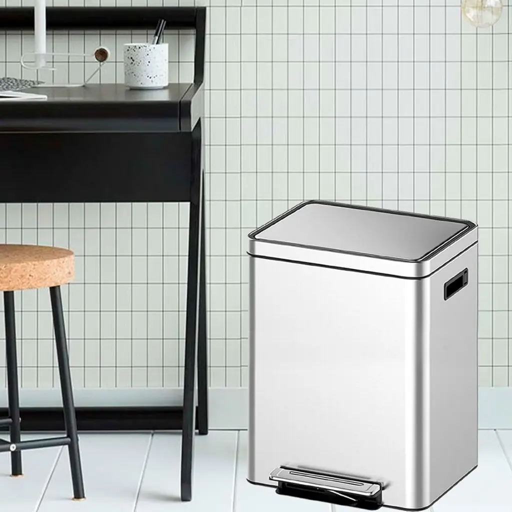 9.5 Gallon Rectangular Stainless Steel Pedal Trash Can With Removable Inner Bucket, Dual Kitchen Garbage Cans
