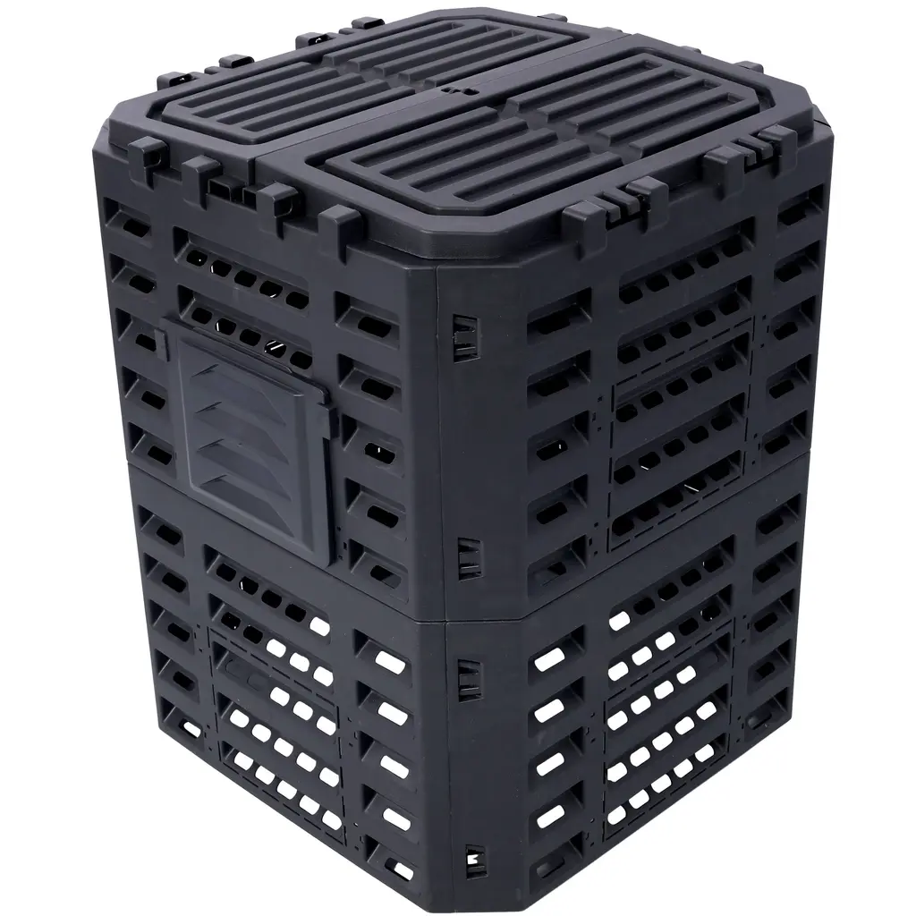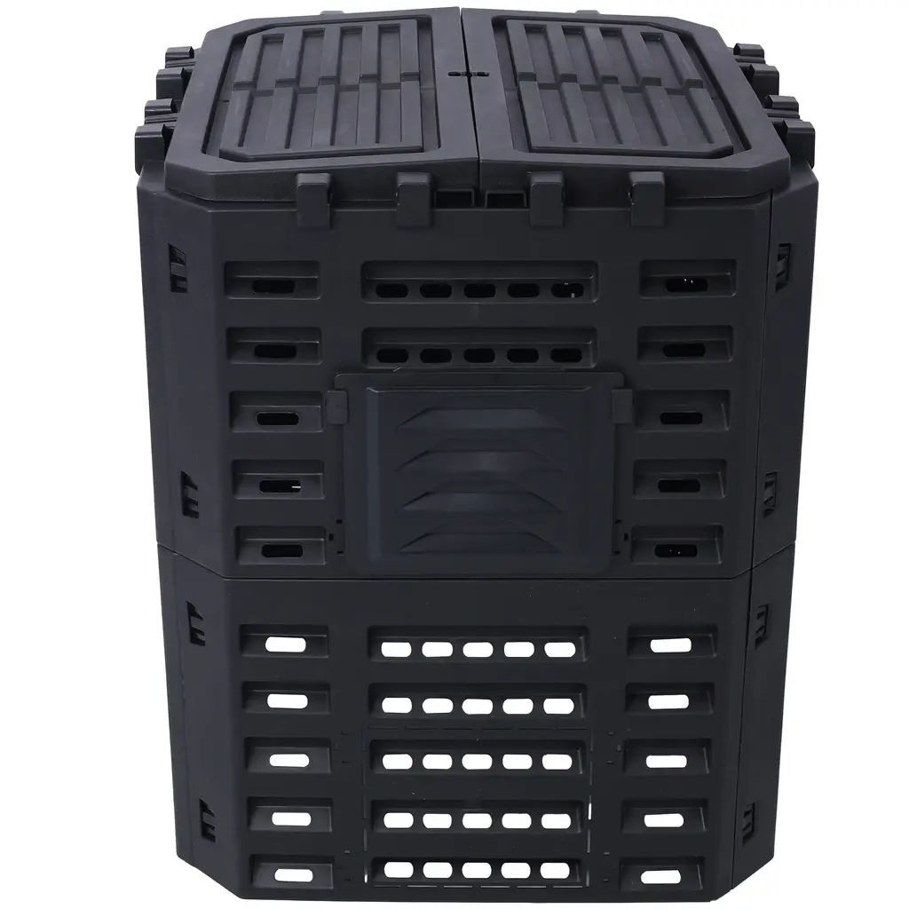 Specification: Description:This 90-gallon (340-liter) garden composter bin is designed for efficient composting, turning waste into nutrient-rich soil for your garden. Its sturdy construction from durable plastic helps maintain heat and moisture, speeding up the composting process. Perfect for both experienced gardeners and beginners, this large compost bin helps reduce waste while producing fertile soil for homegrown fruits, vegetables, and flowers. Simply add kitchen scraps and garden waste to the bin and enjoy healthier plants with nutrient-enriched compost. Ideal for backyard gardens, this bin is easy to use and maximizes the benefits of home composting.Key Features: