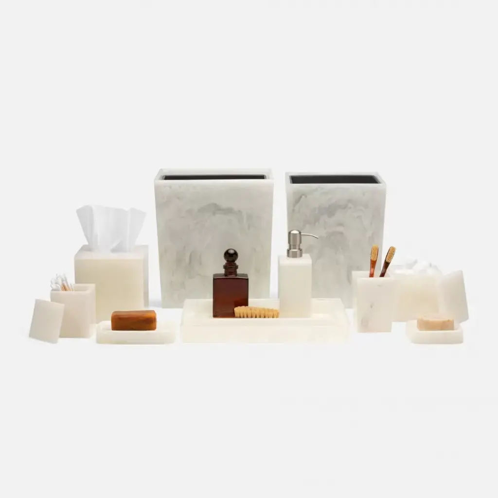 Semi-translucent cast resin in saturated swirls of Cobalt, Marigold or Pearl White gives any bathroom the perfect pop of opulence. The designers at Pigeon & Poodle believe the details of a home are just as important as the furniture. A gorgeous toothbrush holder or handcrafted canister can elevate an entire bath, the perfect frame can heighten the feel of a whole space, and a good-looking storage basket can be your look’s missing link. With thoughtful design and top-notch craftsmanship, Pigeon & Poodle create home accessories with the care and attention typically reserved for larger pieces of décor.