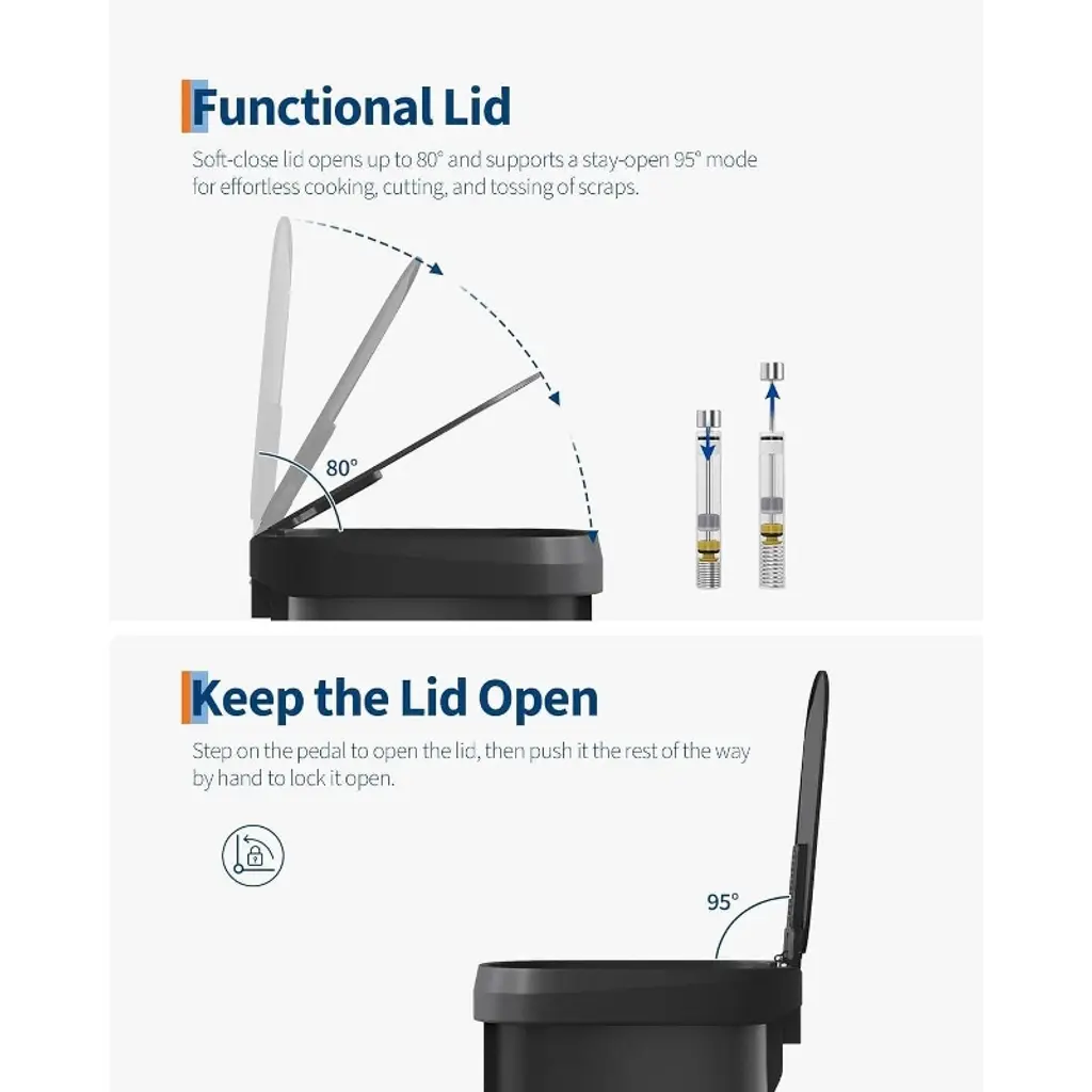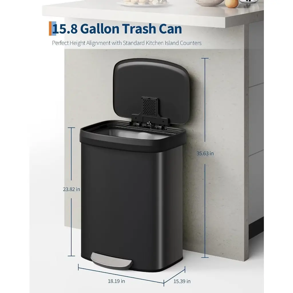 Acekool 16 Gallon 60l Stainless Steel Step Trash Can With Soft-close Lid, Large Capacity Garbage Bin For Kitchen, Bathroom, Living Room,black