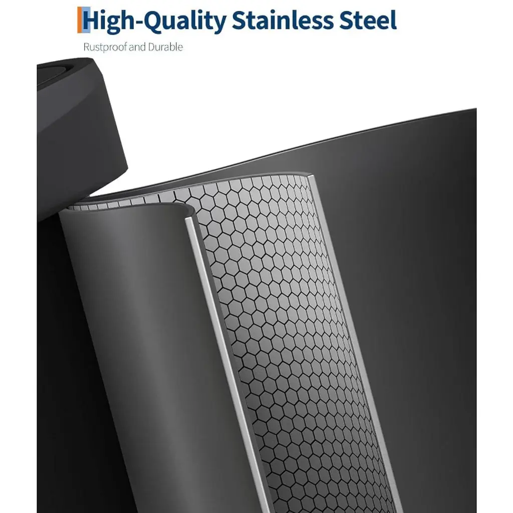 The Acekool 16 Gallon (60L) Stainless Steel Step Trash Can combines capacity, convenience, and style for all your waste disposal needs. Its large size accommodates daily trash without constant emptying, making it ideal for kitchens, bathrooms, offices, or living areas. The rust-resistant stainless steel finish is easy to clean and complements modern interiors. This trash bin features a soft-close lid with an odor-sealing design that keeps smells contained and noise minimal. The lid also stays open when needed for longer tasks. A built-in deodorizer box helps maintain freshness. The strong foot pedal enables hands-free operation, supporting hygiene in busy households. With a design that blends functionality and elegance, this trash can fits various rooms and spaces while delivering dependable performance. Specifications: Capacity: 16 gallons / 60 liters Dimensions: Standard large rectangle shape Material: Stainless steel shell with plastic soft-close lid Features: Step-on pedal, soft-close lid, odor seal, deodorizer box Color: Stainless steel finish with black lid Includes: Trash can, deodorizer box, foot pedal mechanism