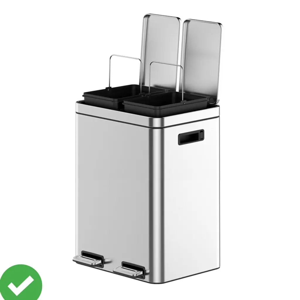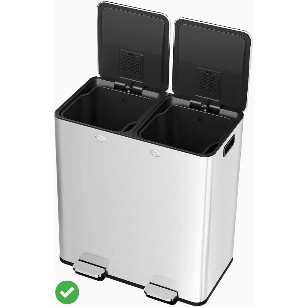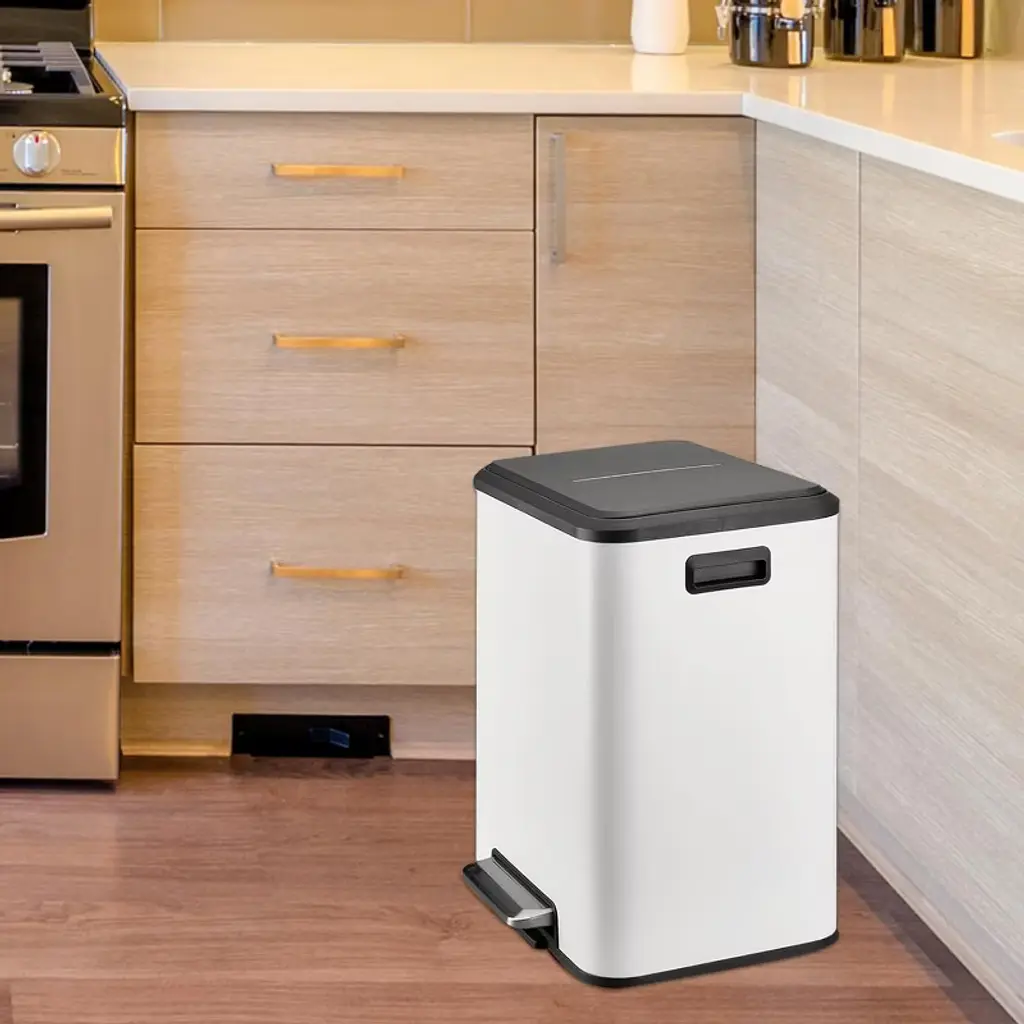The Acekool 30L Dual Compartment Trash Can enhances waste sorting at home with two separate 15L removable buckets, making recycling and trash disposal more convenient and organized. The soft-close lid reduces noise and traps odors effectively, keeping your space fresh and quiet. Its stainless steel construction offers a modern look while resisting rust for lasting use. This compact rectangular bin fits well in kitchens, bedrooms, or offices and provides ample capacity to manage daily waste without frequent emptying. Easy-to-clean removable buckets ensure simple maintenance and a hygienic environment.