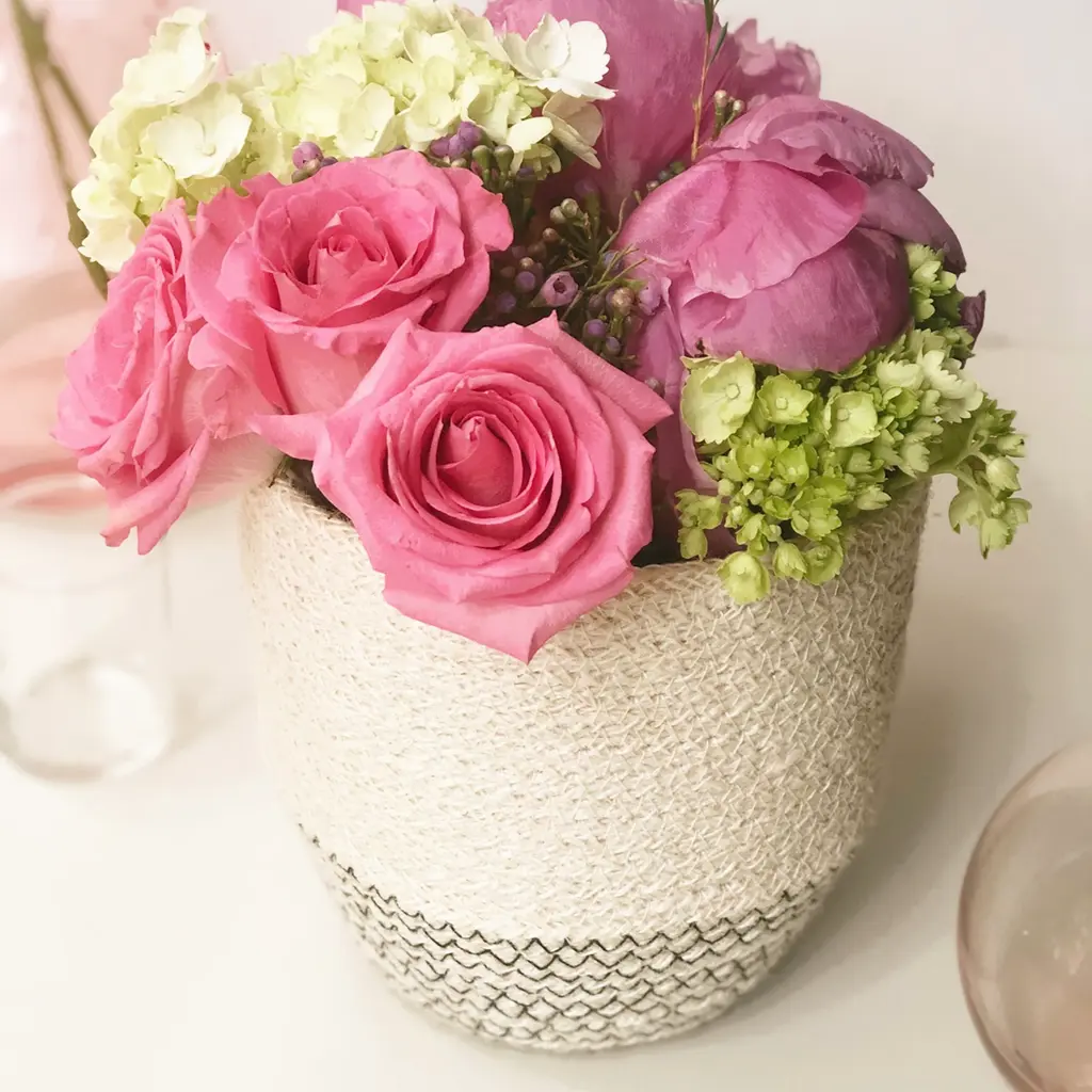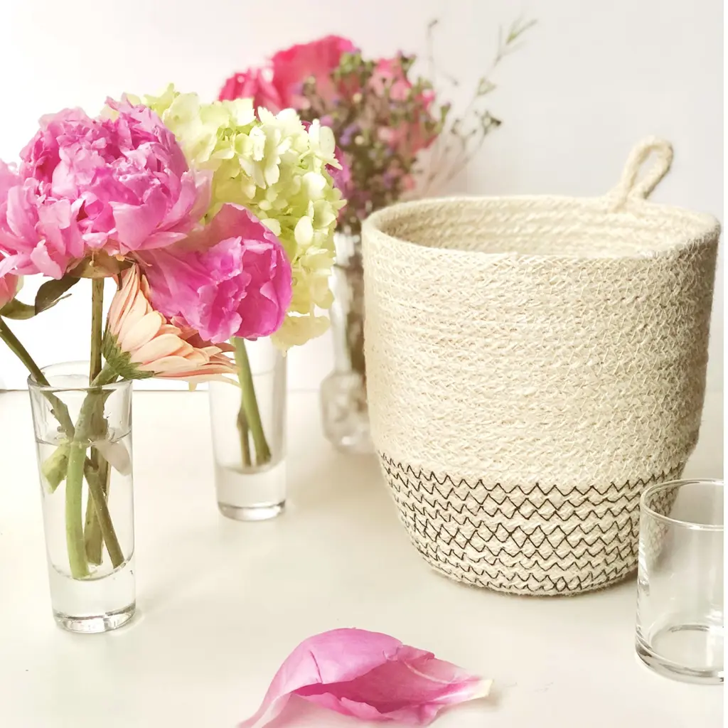 Amari Loop Bin with a loop can hold three thin bud vases and give you a full garden flower arrangement. Try it yourself with any vases or cups that you already have at home!Each product is designed and curated by Korissa, sustainably handmade by Fair Trade artisans in Bangladesh.