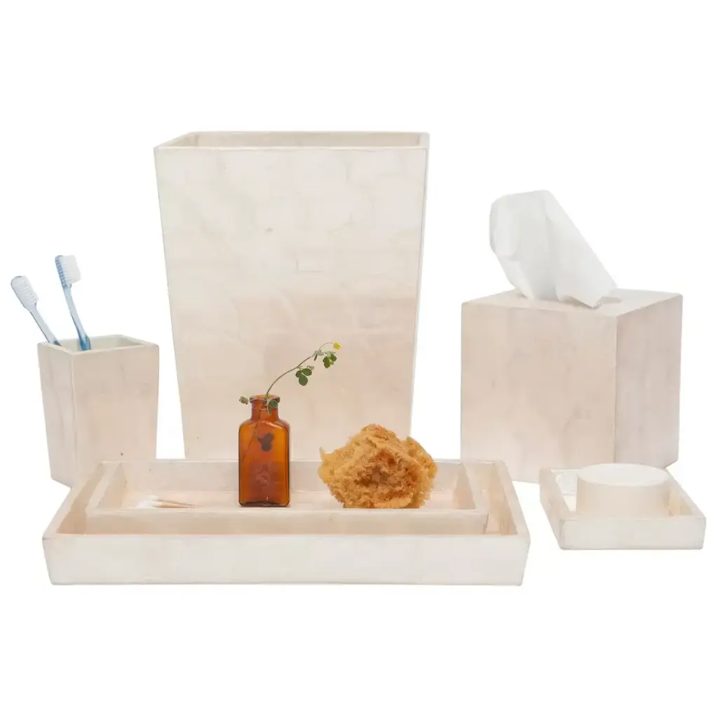 The fan-like pattern of whole Capiz shell overlay brings a subtle shimmering elegance to our Andria collection. The designers at Pigeon & Poodle believe the details of a home are just as important as the furniture. A gorgeous toothbrush holder or handcrafted canister can elevate an entire bath, the perfect frame can heighten the feel of a whole space, and a good-looking storage basket can be your look’s missing link. With thoughtful design and top-notch craftsmanship, Pigeon & Poodle create home accessories with the care and attention typically reserved for larger pieces of décor.