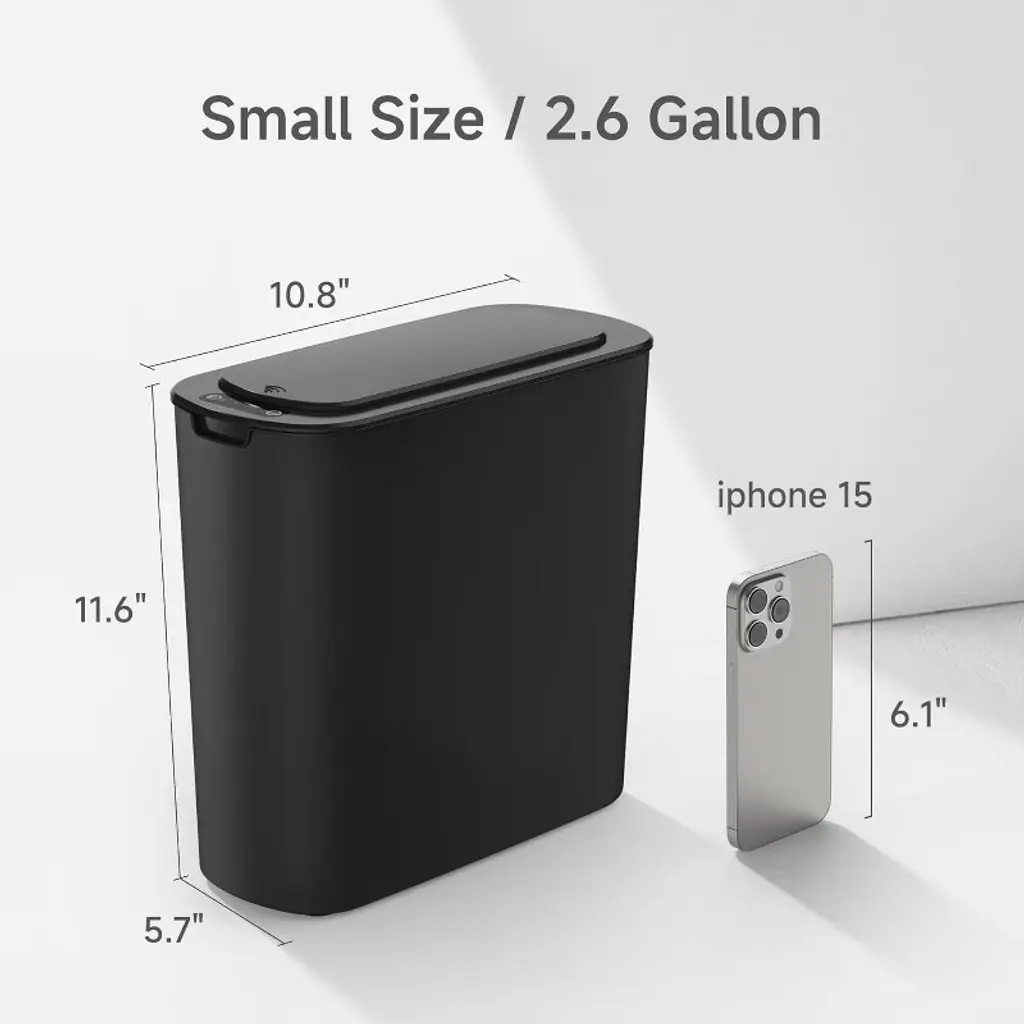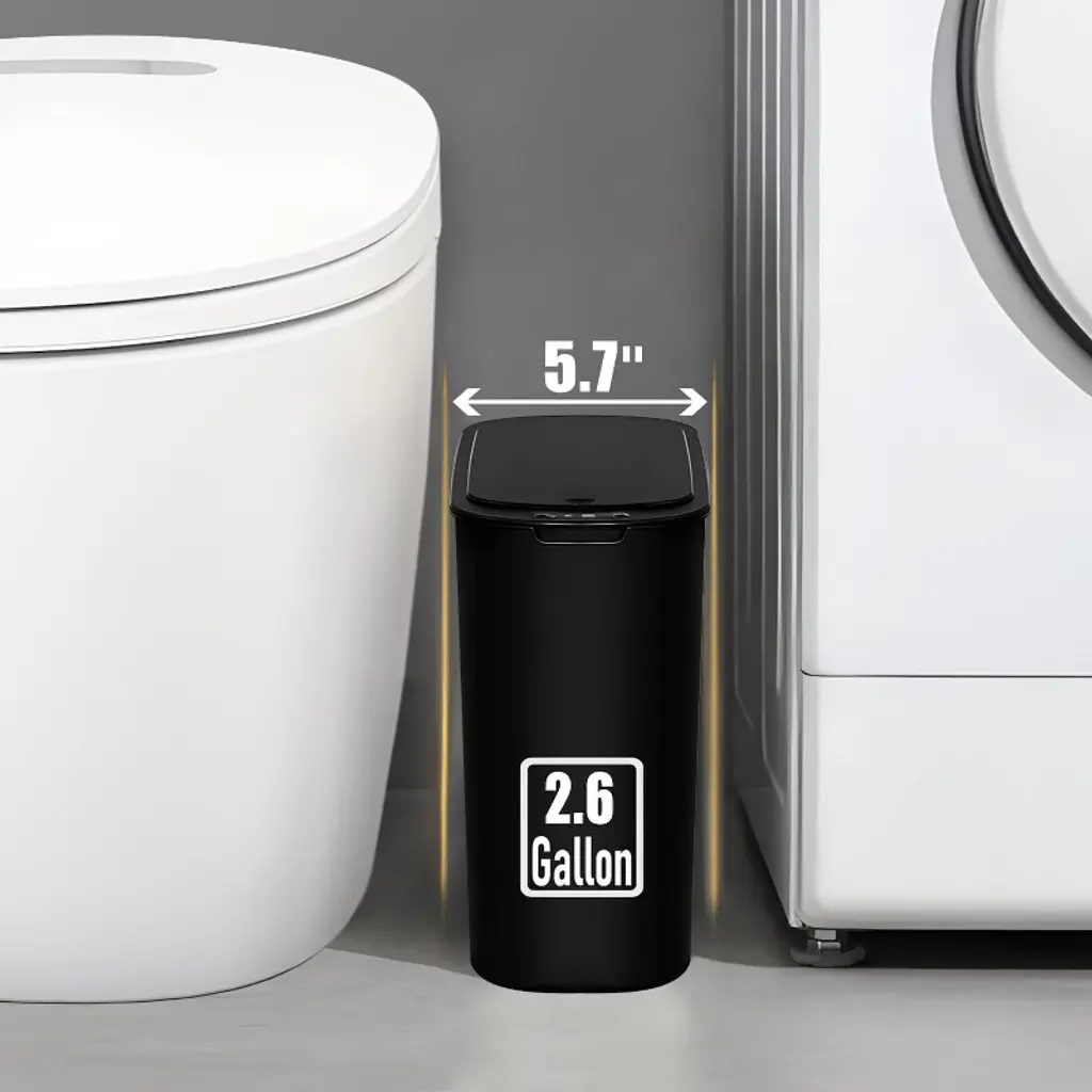 Discover this automatic motion - sensor trash can! It features a 2.6 - gallon capacity, made of durable plastic. Using advanced infrared technology, it offers touchless operation. When your hand or an object is in the sensing area, the lid opens automatically, which is especially great for people with limited mobility. Its slim design makes it a perfect fit for small spaces such as offices, bedrooms, bathrooms, and dormitories. The lid fits snugly to prevent odor spread and keep your space fresh. There's a removable inner fix ring to hold the garbage bag in place and maintain a tidy look. And with the countdown light function, the lid closes automatically 5 seconds after you remove your hand. This trash can provides a hygienic and convenient trash - disposal solution for your daily life.