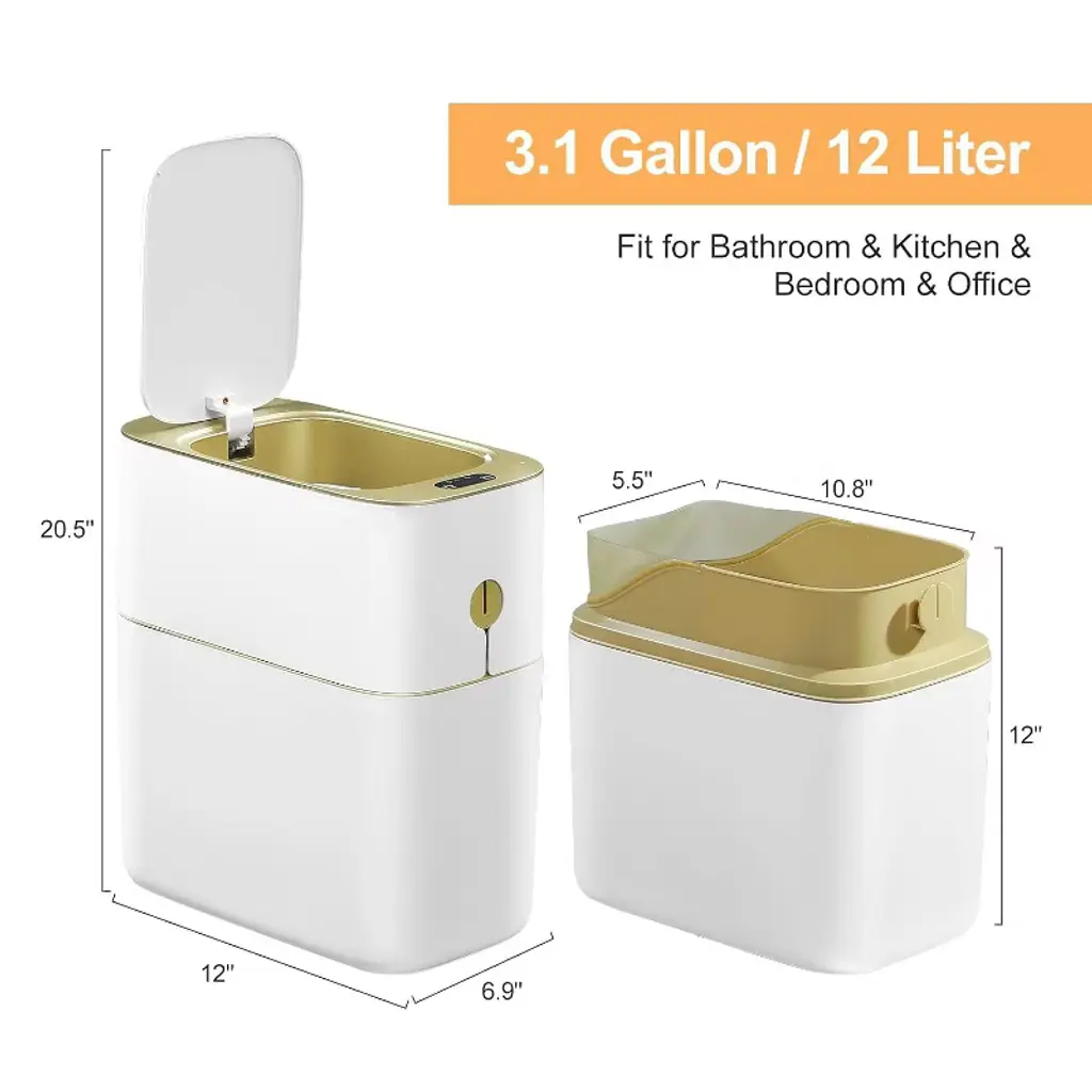 Aoibox Automatic Trash Can With Lid, 3.1 Gallon Smart Motion Sensor Touchless Small Waste Basket, Slim Garbage Can For Kitchen Office Home Toilet