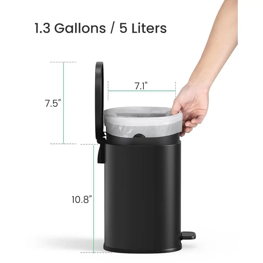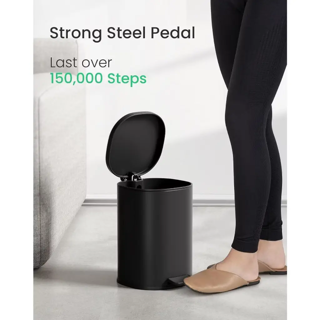 Discover this amazing trash can designed for modern living. Crafted from robust stainless steel, it's built to last with a pedal that can withstand over 150,000 steps. With a 1.3 - gallon capacity, it provides ample space for waste despite its compact form. The removable inner bucket makes trash disposal a breeze, and the smooth surface can be quickly wiped clean. It features a soft - close lid to ensure quiet operation, so you won't disturb your family. The foot - pedal design offers hands - free use, adding convenience in bathrooms, bedrooms, or offices. This trash can is the perfect addition to any modern space, bringing functionality and style to your daily life.