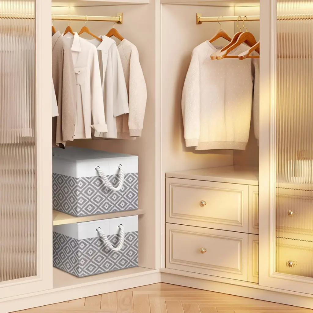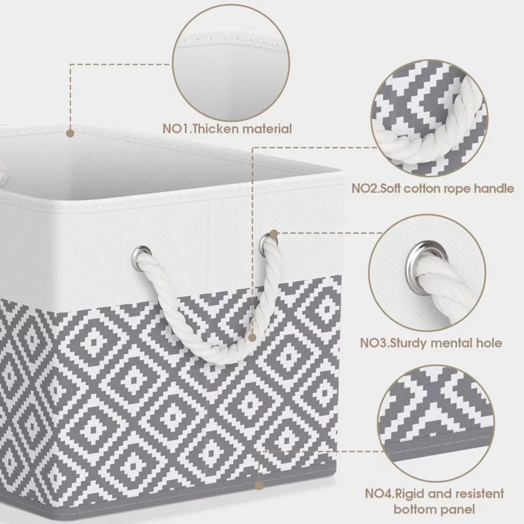 Upgrade your home organization with these spacious storage bins, featuring sturdy high-quality fabric and reinforced rope handles for easy carrying and lasting durability. The collapsible design makes storage and transport effortless, while sleek white and grey tones blend perfectly into any room. Whether you need to sort books, clothes, toys, or office essentials, these versatile baskets keep your space tidy and stylish.