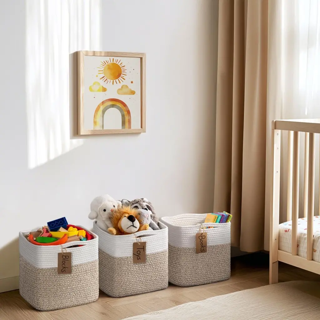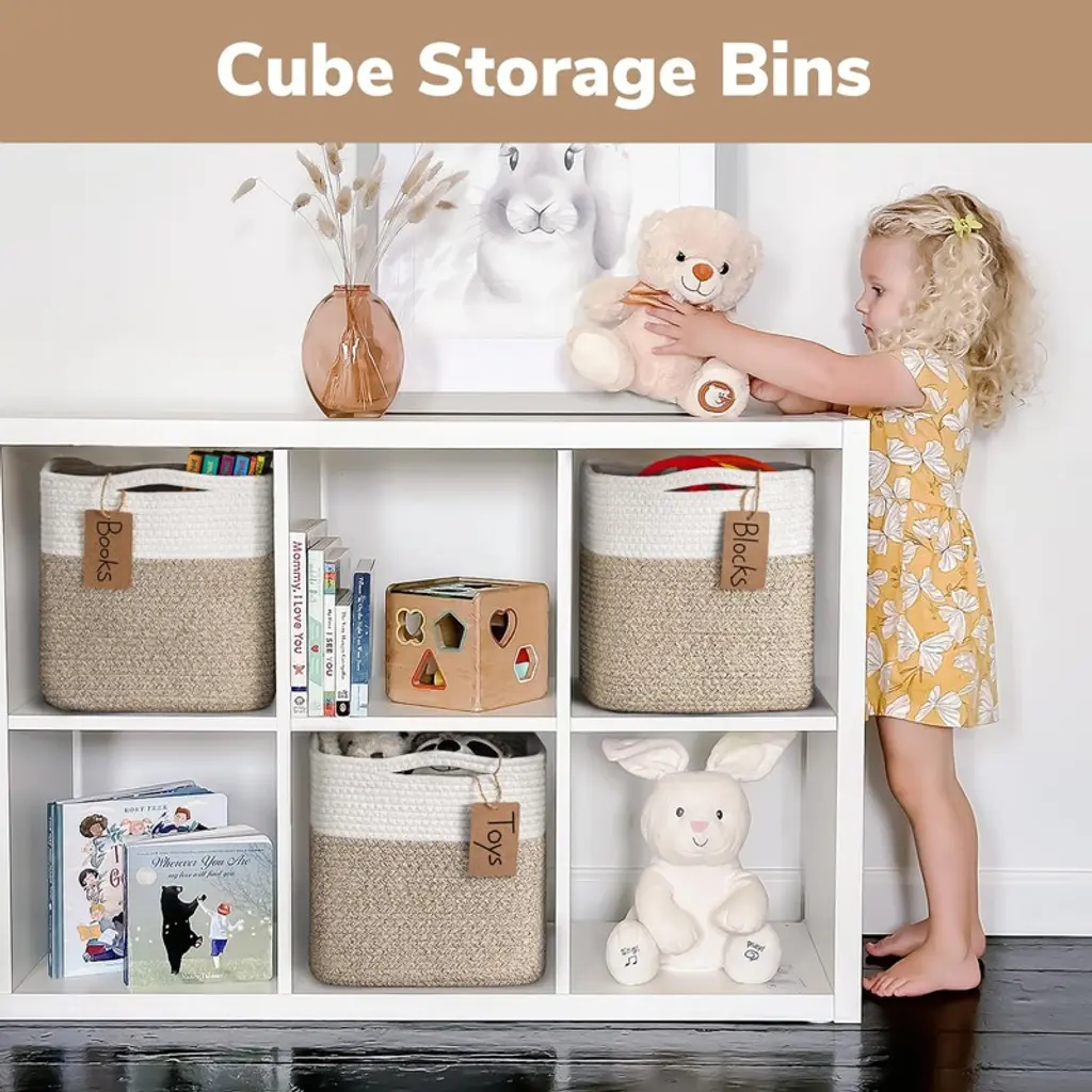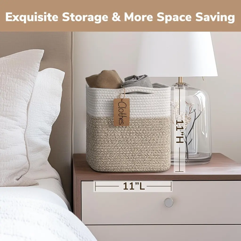Organize your home effortlessly with these sturdy 11x11-inch woven baskets, crafted from high-quality natural cotton rope for a safe, eco-friendly touch that¡¯s perfect for families and pet owners. Designed with hidden handles and space for labeling, each cube bin keeps your space clutter-free while blending seamlessly into any room. Elevate your shelves and gift-giving with these versatile, stylish organizers that deliver both elegance and everyday practicality.