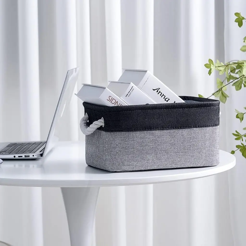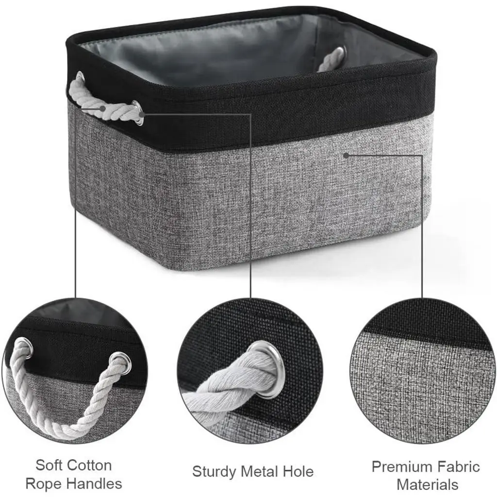 Aoibox Fabric Storage Baskets Collapsible Organizing Bins With Rope Handles Medium 14x10x7 Inch Black Grey 3 Pack