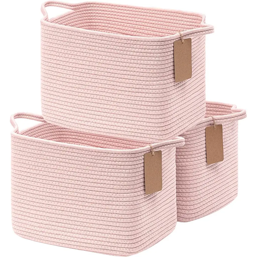Aoibox Large Rectangle Storage Basket 22x17x12 Pink Cotton Rope Woven Bin With Handles For Toys Laundry Towels Clothes