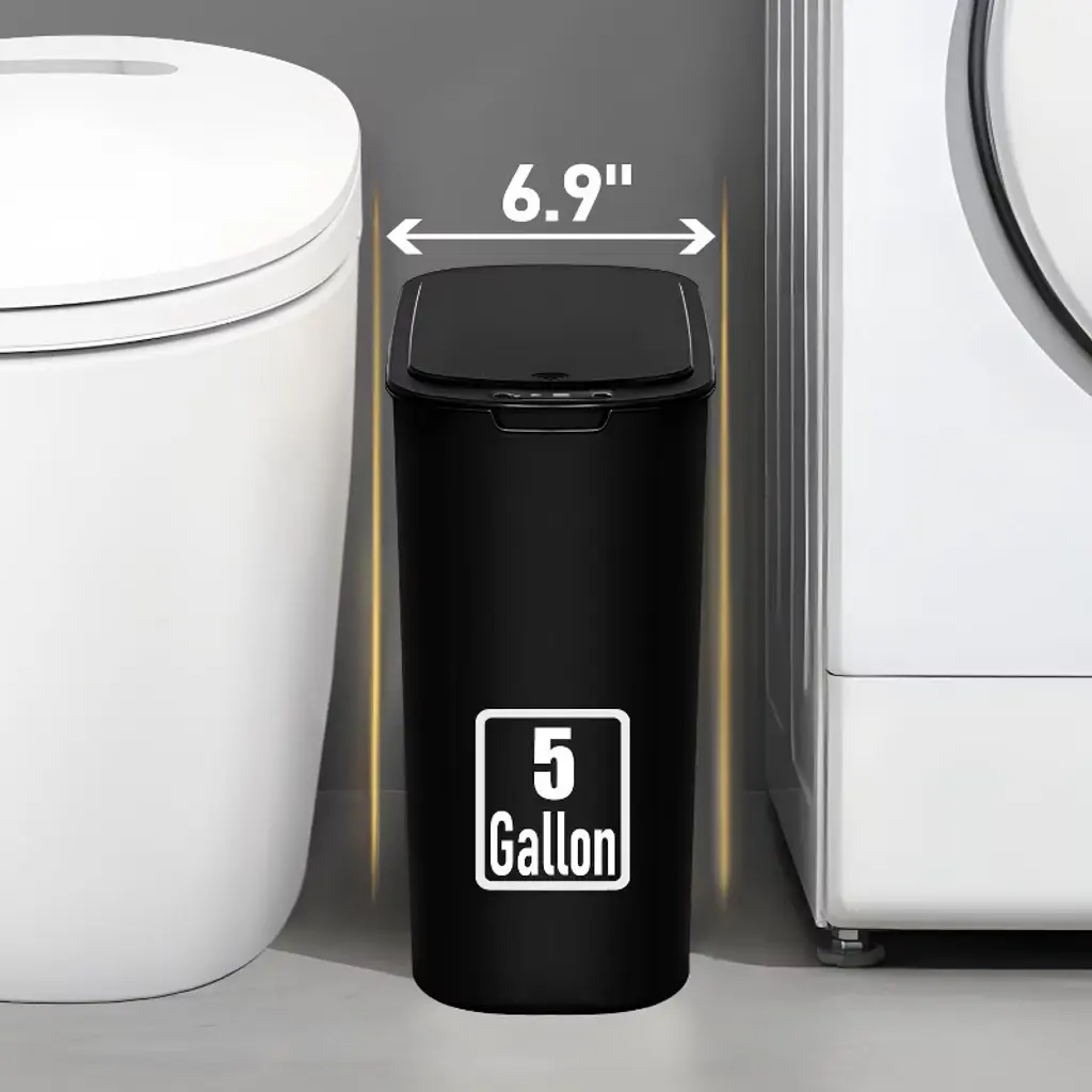 Discover this 5 - gallon motion - sensor trash can, a perfect addition to your home or office. Crafted from plastic, it's both durable and cost - effective. The touchless operation is a game - changer; just wave your hand above the infrared motion sensor, and the lid opens. It automatically closes after 5 seconds of no movement, ensuring a hygienic experience. With its slim design, it can fit into narrow spaces like bathrooms, offices, bedrooms, and living rooms, saving valuable space. The well - fitting lid effectively seals in odors, keeping your environment fresh. Plus, the removable bag fix ring holds the garbage bag in place, preventing it from overhanging and maintaining a tidy look. Upgrade your waste management with this smart and convenient trash can.