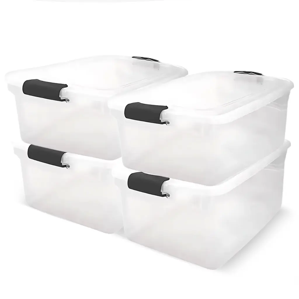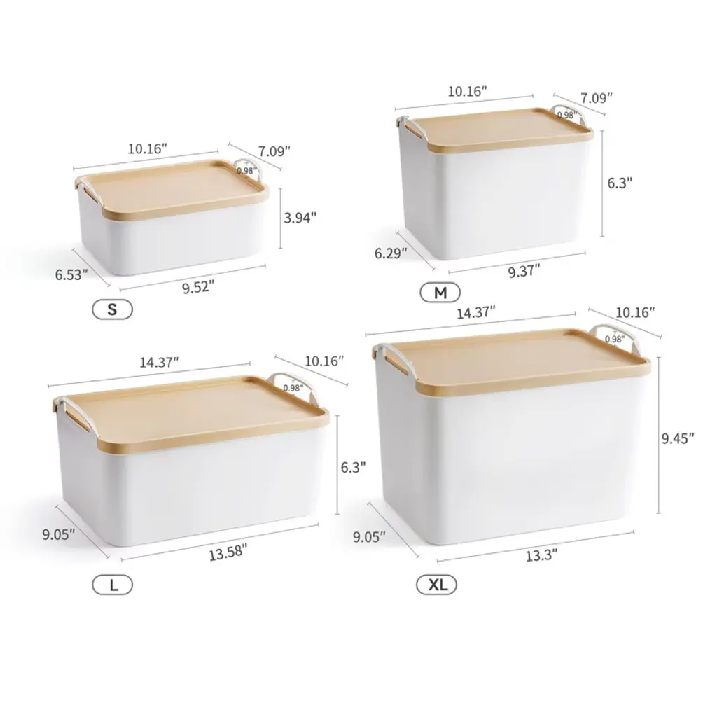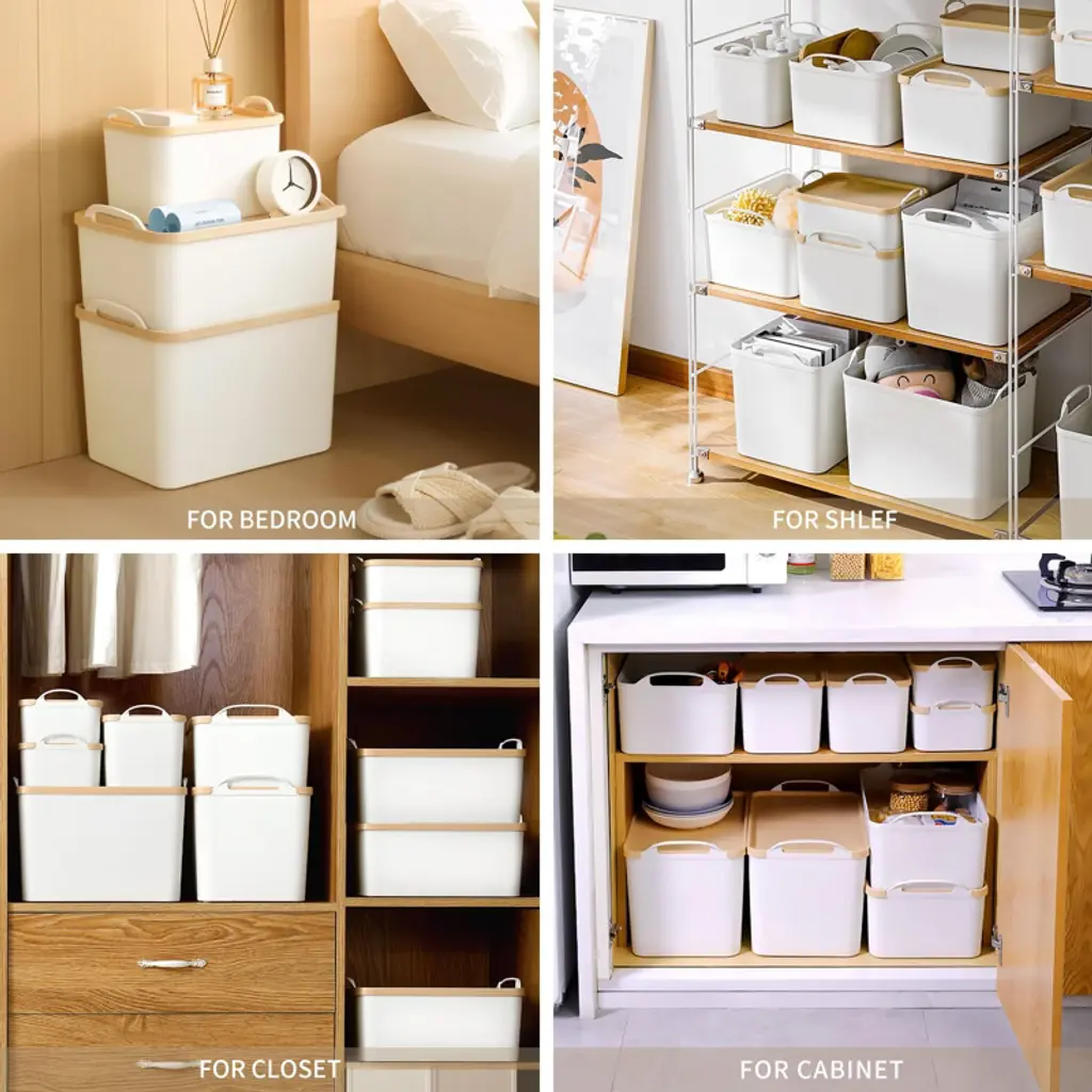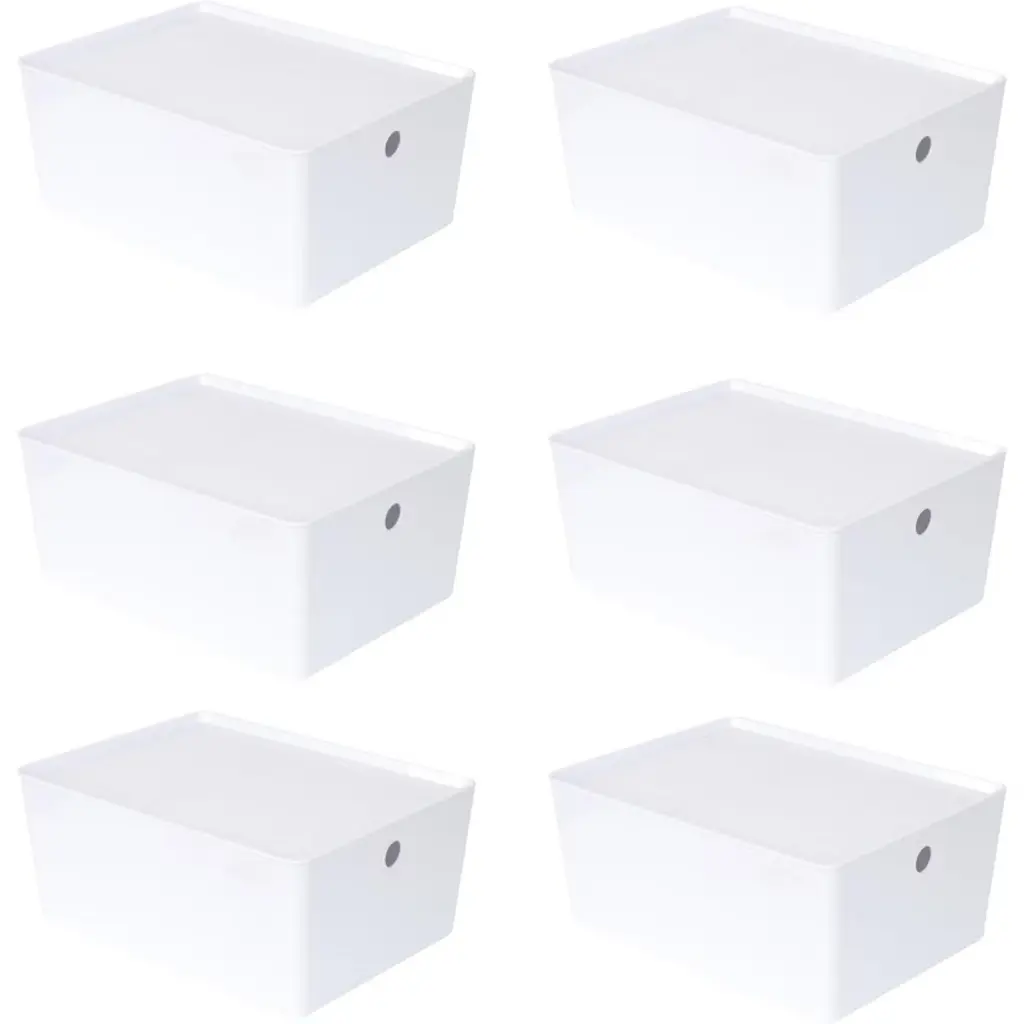 Aoibox Plastic Storage Bins With Lids Set Of 8 Multi Size Decorative Organizing Containers For Closet Office Shelves White