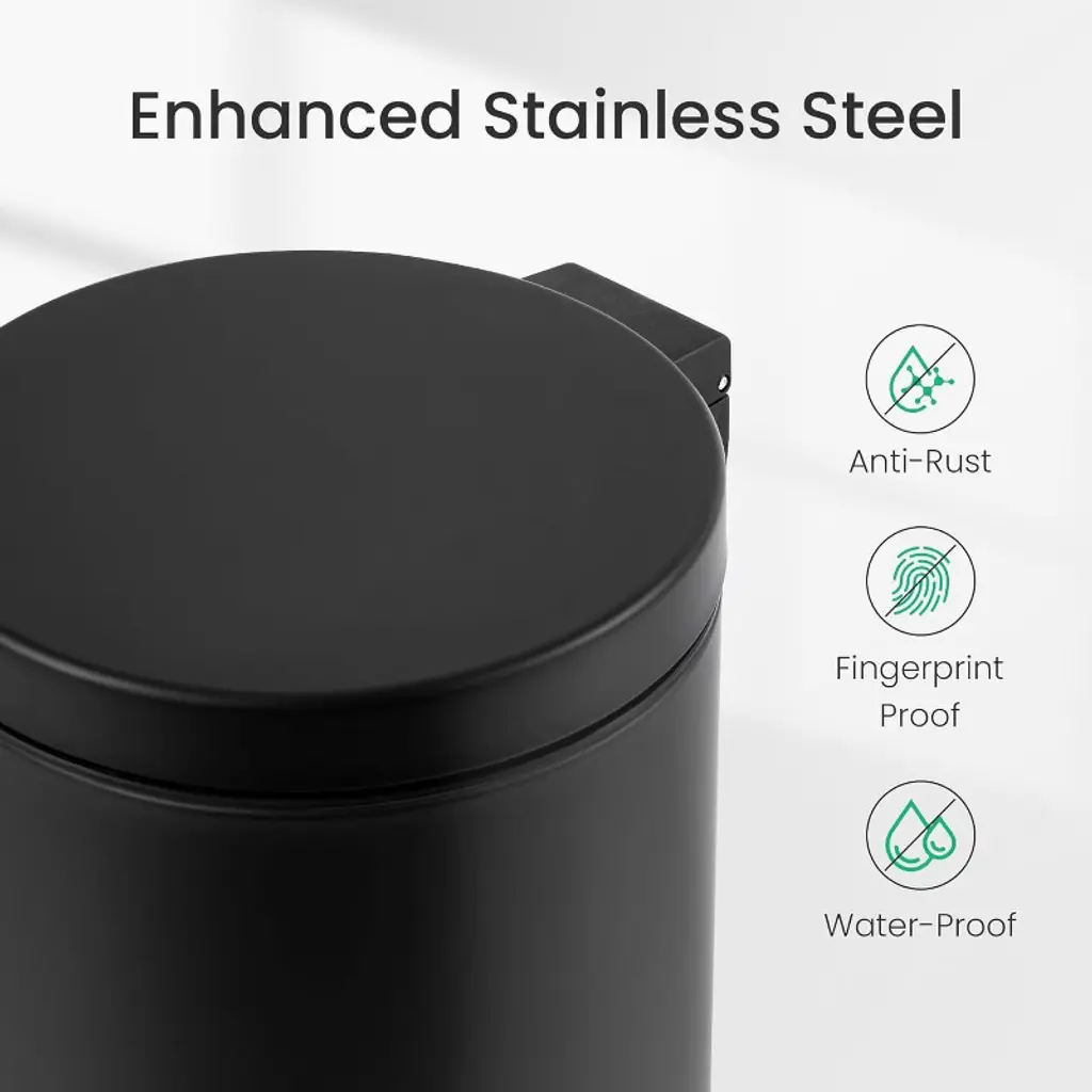 Looking for a practical and stylish trash can for your small spaces? This trash can offers a 4.5 - liter / 1.2 - gallon capacity, perfect for bathrooms, bedrooms, and offices. Made of high - quality stainless steel, it's built to last, with a steel pedal that can endure over 100,000 steps. The lid closes quietly, eliminating annoying slamming sounds. It comes with a plastic removable bucket and a carry handle, making it easy to empty the trash. Whether you're at home or in the office, this trash can provides a convenient waste - management solution, adding both functionality and style to your daily life.