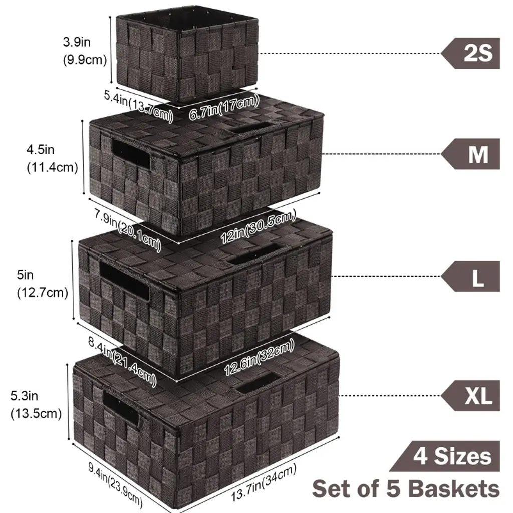 Transform your space with this versatile set of 5 woven storage baskets, featuring a stackable design and sturdy built-in handles for effortless organization on shelves, in closets, or throughout your home and office. Crafted from soft yet durable materials with a chic sheen, these decorative bins offer privacy with secure lids and protect your belongings from scratches while maintaining their elegant shape. Perfect for storing everything from clothes and toys to crafts and toiletries, these stylish baskets also make thoughtful gifts for any occasion.