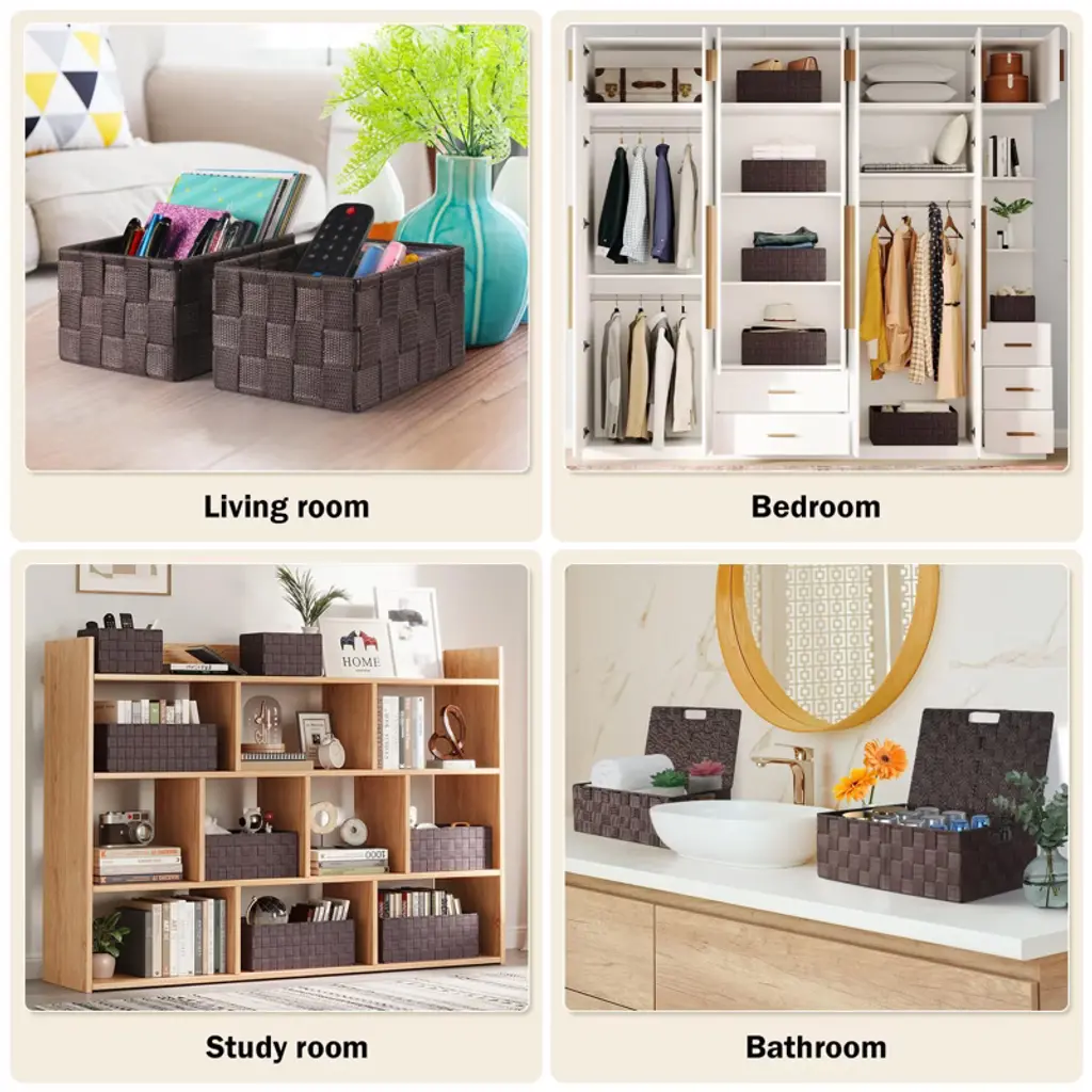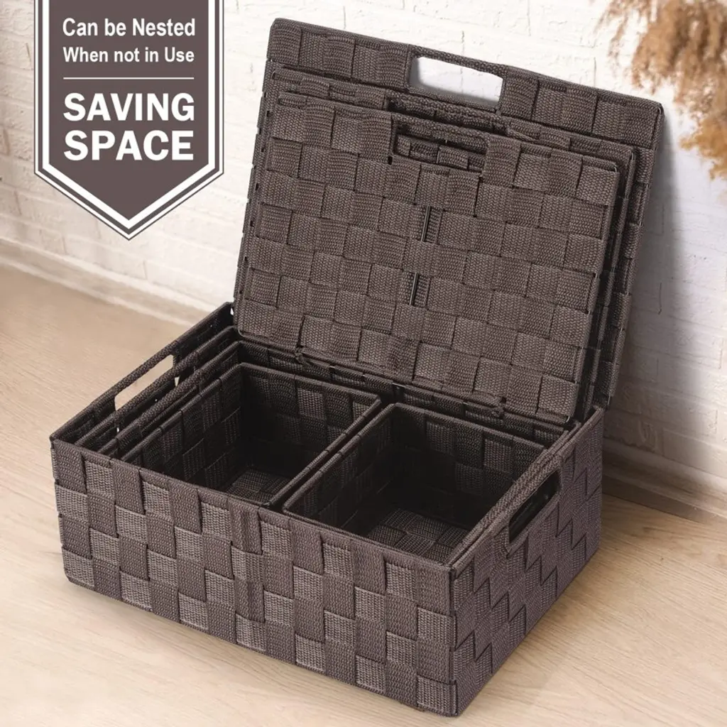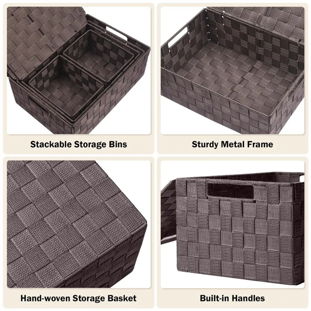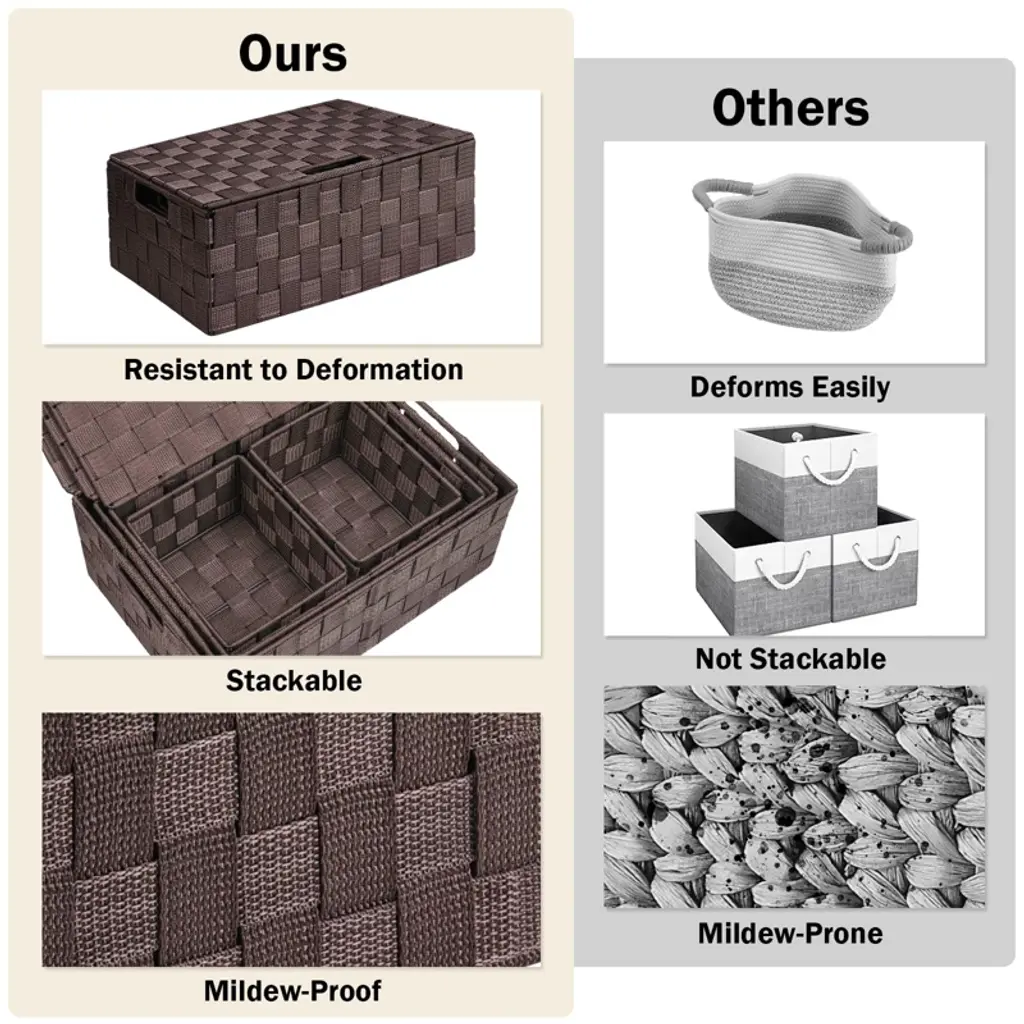 Aoibox Stackable Woven Storage Bins Baskets With Lids Built-in Handles Brown Decorative Organizing Cubes 5 Pack
