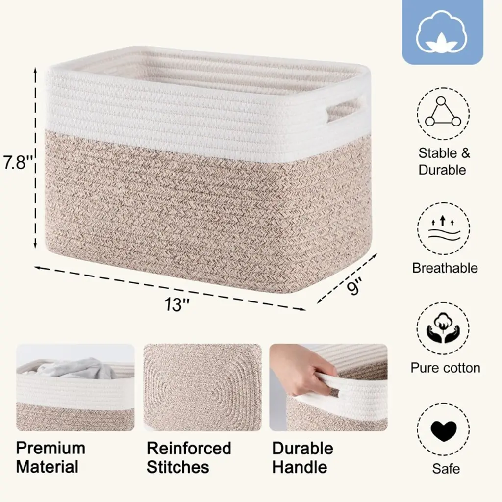 Upgrade your home organization with these soft cotton rope storage baskets, designed to fit perfectly on shelves, closets, or under beds while adding a rustic touch to any room. Durable yet gentle, these versatile bins are safe for children and pets, keeping toys, books, towels, and clothes neatly contained and easily accessible. Maximize your space effortlessly—when not in use, just fold them flat for convenient storage.
