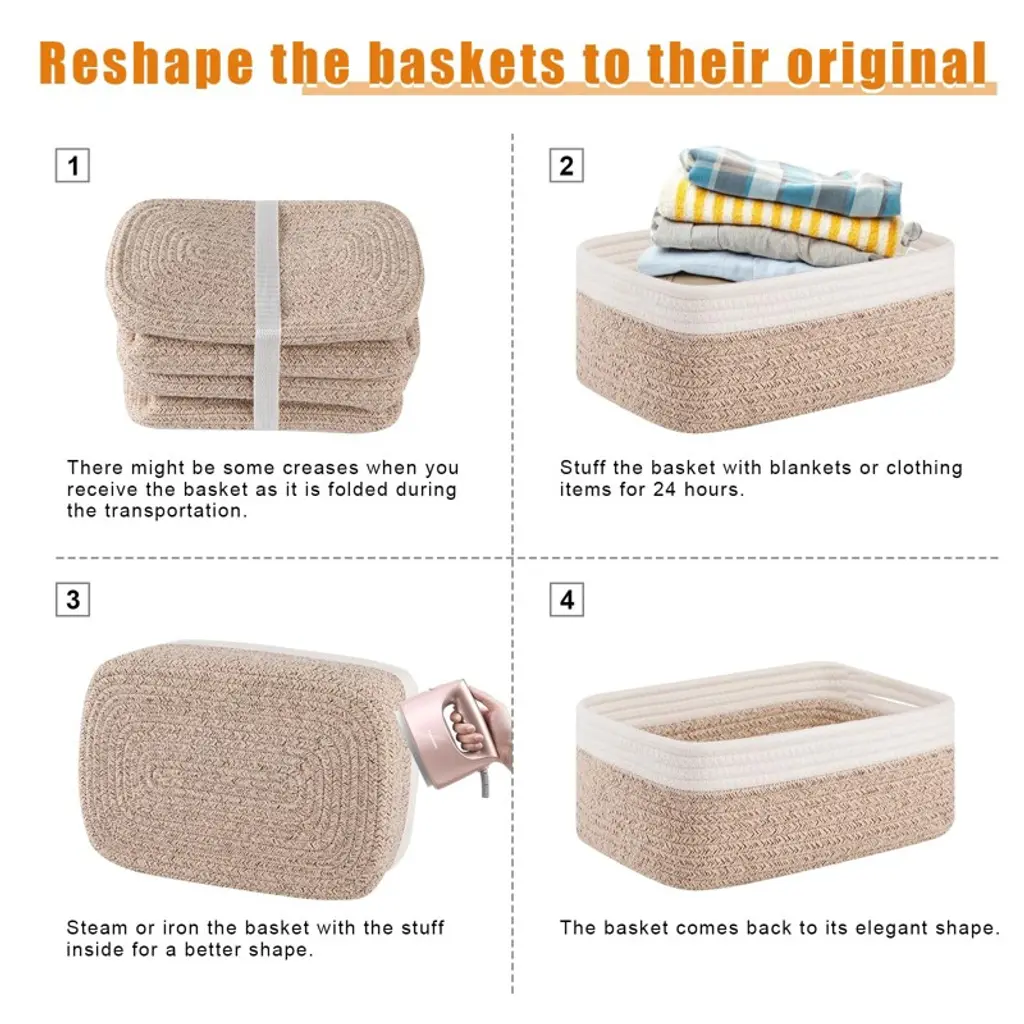 Aoibox Woven Storage Baskets For Organizing Shelves Cute Small Decorative Bins Brown White Versatile 4 Pack Set
