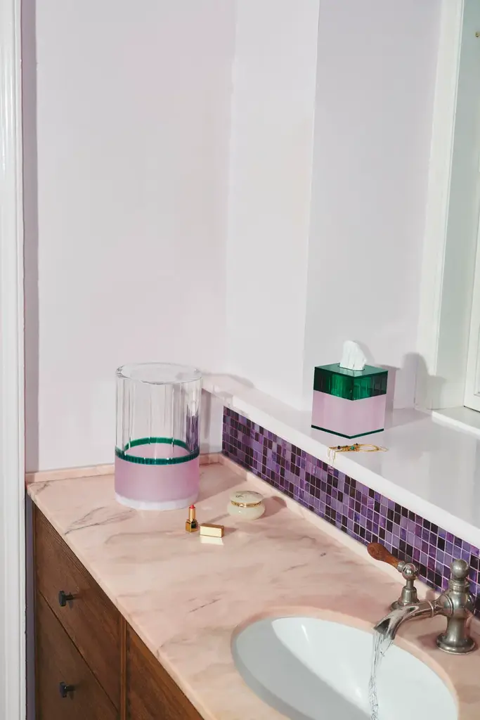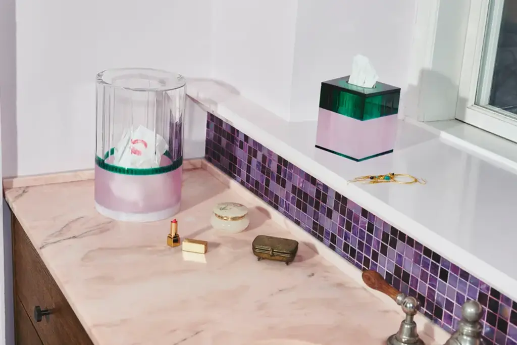 AU REVOIR is a handmade crystal wastebin.Each item in this collection is designed to be a standout piece, transforming your preparation space into a haven of sophistication. From the Au Revoir Waste Bin to the Glossy Tissue Box, every product is crafted with meticulous attention to detail.Material: Fine hand-cut crystal Colors: Green/Matte Rose/Clear Comes with a luxury gift box signed by Reflections Copenhagen