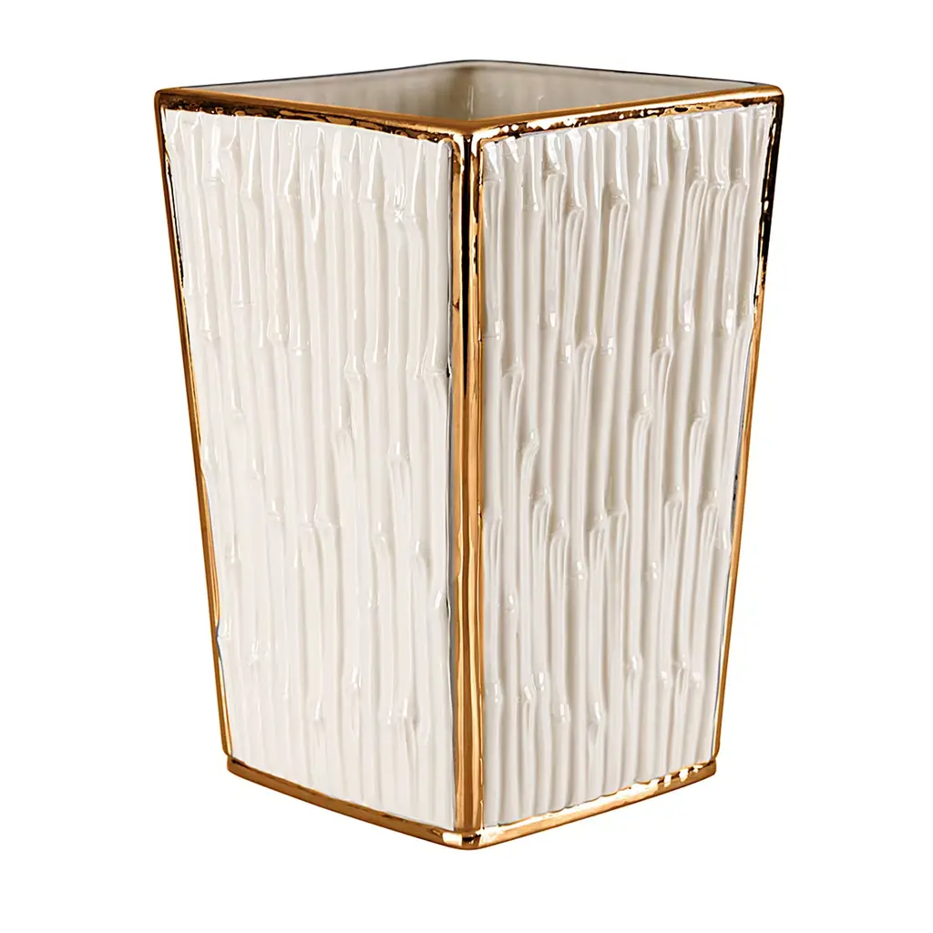 Audrey Moonglow Enamel/gold Trim Scalloped Wastebasket + Liner (8.75"l X 7"w X 11.75"h)