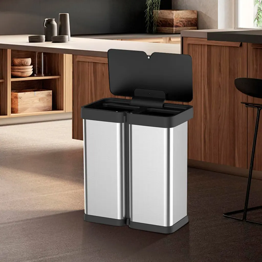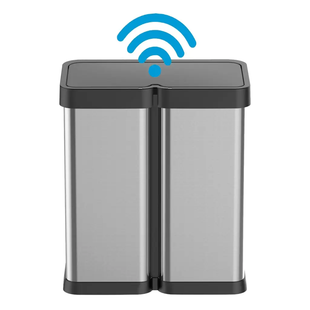Automatic Trash Can, Touchless Stainless Steel Wastebasket, Smart Motion Sensor Rubbish Can, 2 x 8 Gallon (2 x 30 L) Garbage Can for Kitchen, 2 Compartment Classified Rubbish Bin
