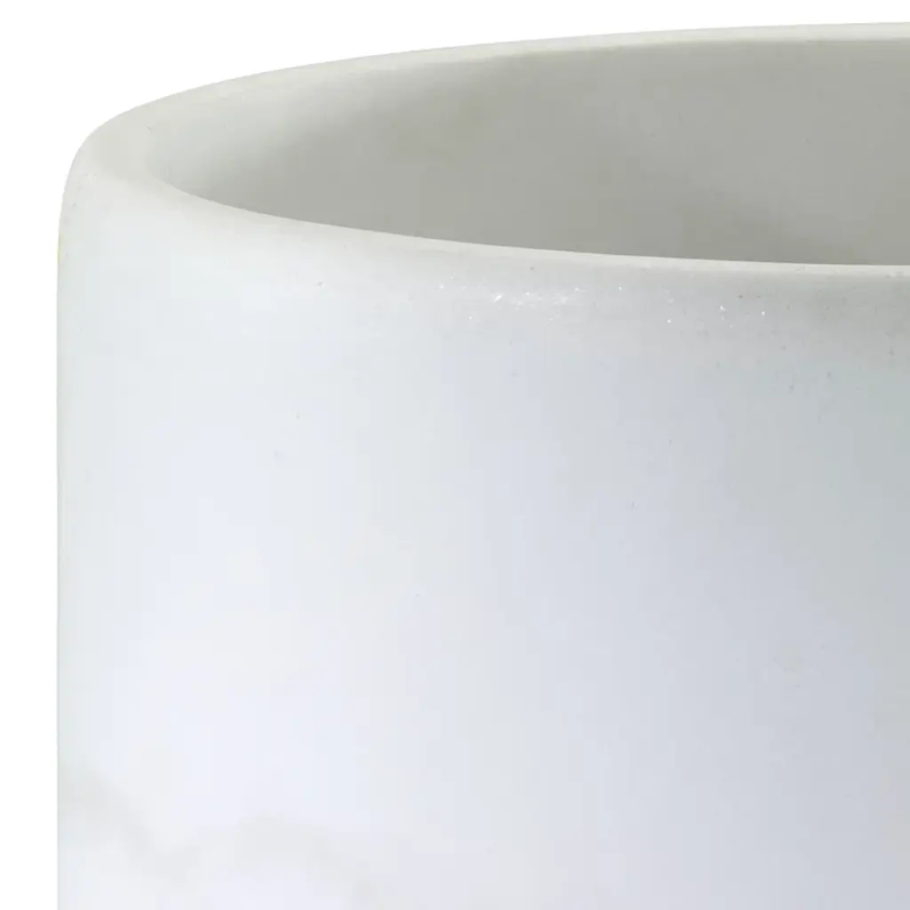 The Now House by Jonathan Adler Vapor wastebasket features a marble look with a matte white base and irregular horizontal bands. No two pieces are the same. Made of durable resin. The item that can be used to freshen up any room in your house-bathroom, kitchen, bedroom, or office.