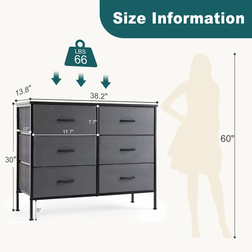 Elevate your home organization with this multifunctional dresser, designed to fit seamlessly into closets, nurseries, and entryways. It offers ample storage with a mix of large and medium drawers, keeping your space orderly and items accessible. The dresser is built to last with a durable design that is safe for kids and easy to clean. Assembly is a breeze with included tools and guidance, backed by responsive customer support.