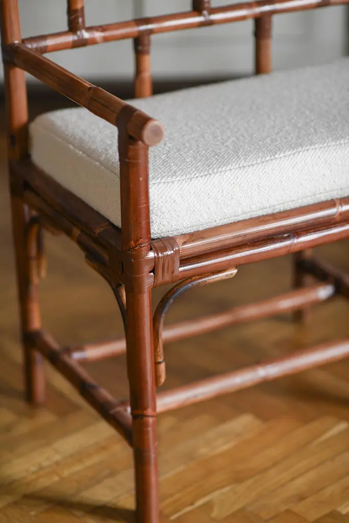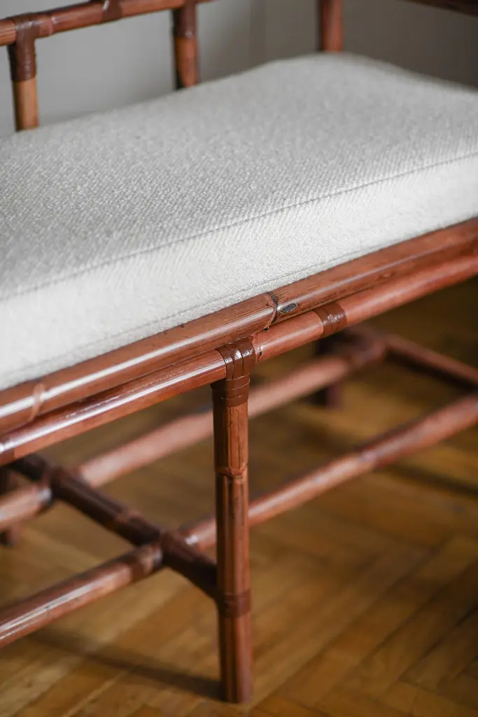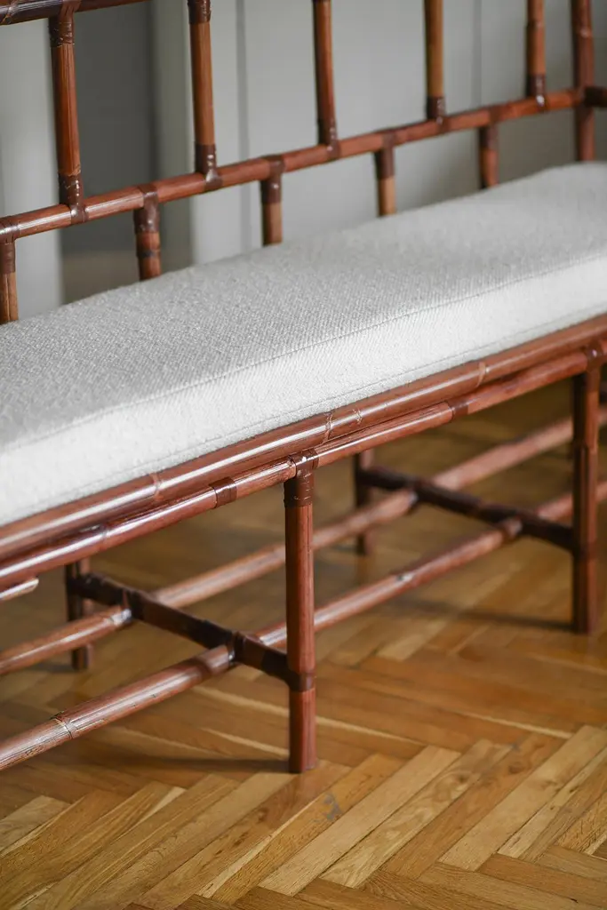 Bamboo Bench With Leather Bindings Complete With Cushion In Dedar Fabric
