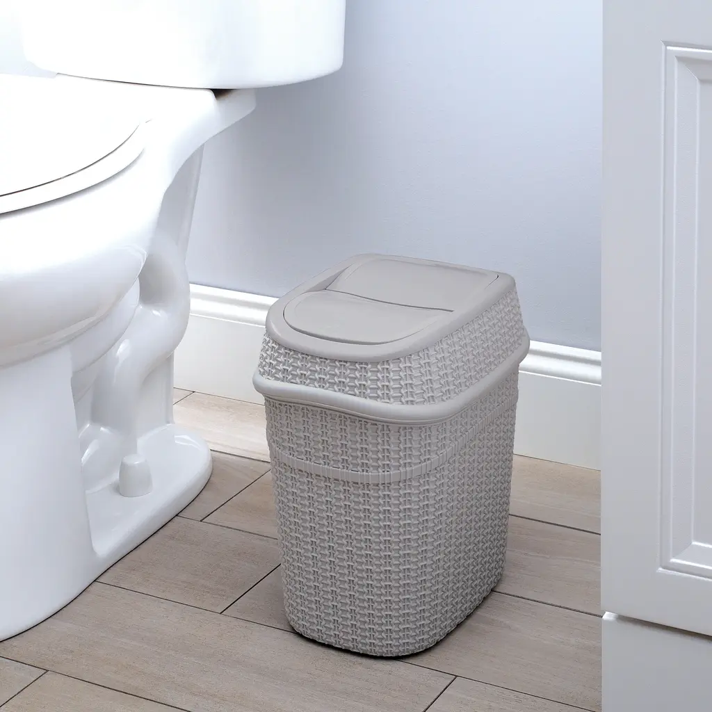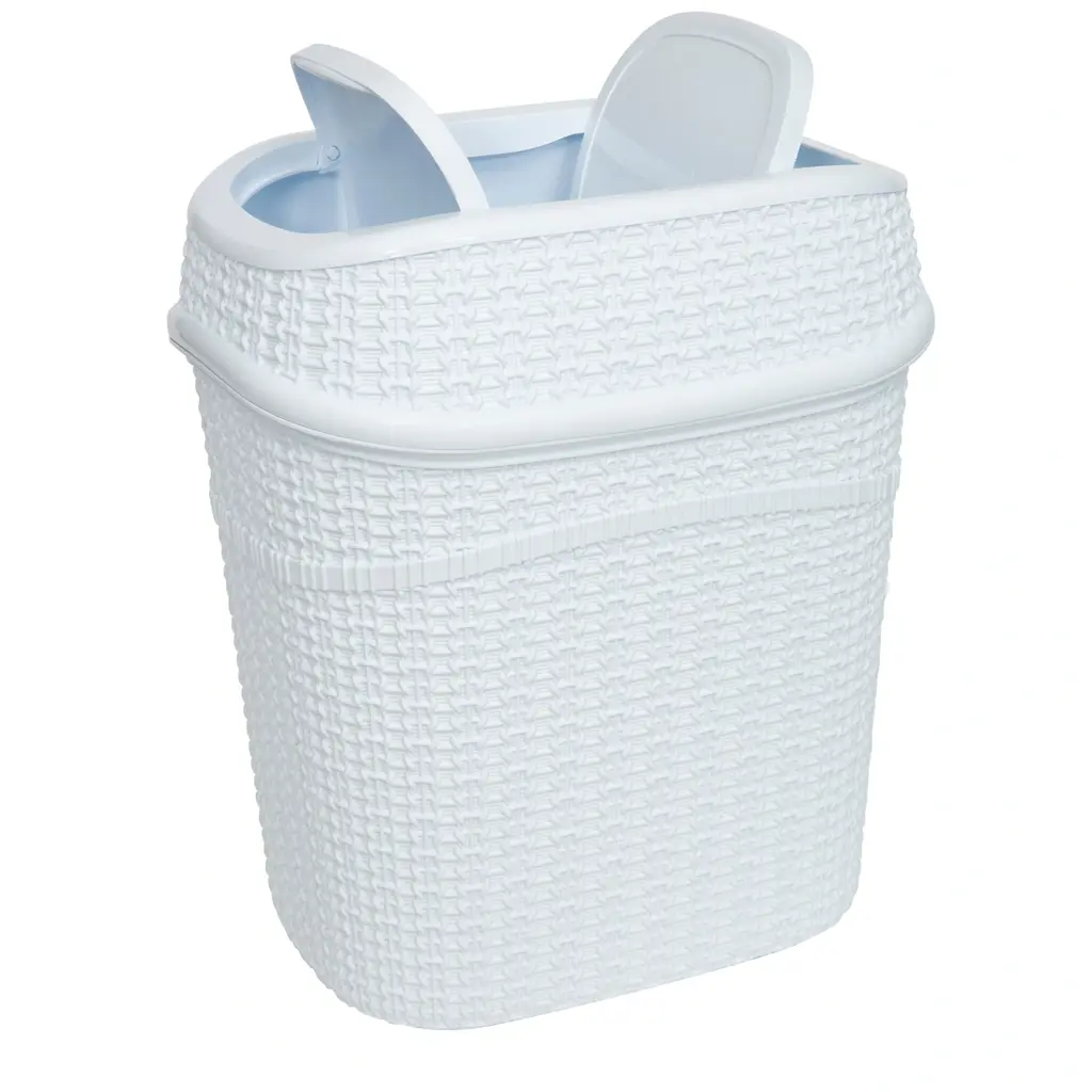 Add a contemporary look to your home with the Bath Bliss 9.5 Liter Sailor Knot Swing Top Waste Bin. The Sailor Knot design makes for a functional and decorative piece for your bathroom, office, or dorm. Designed with a 9.5-liter capacity and a convenient swing top lid. The lid trop odors and prevents messes and overflow. When the waste bin is full the whole top comes off to easily empty the bin. It is a great addition to any small space. Never worry about the look of trash again with this Bath Bliss waste bin to hide the mess. A must have for every room to keep your home clean!