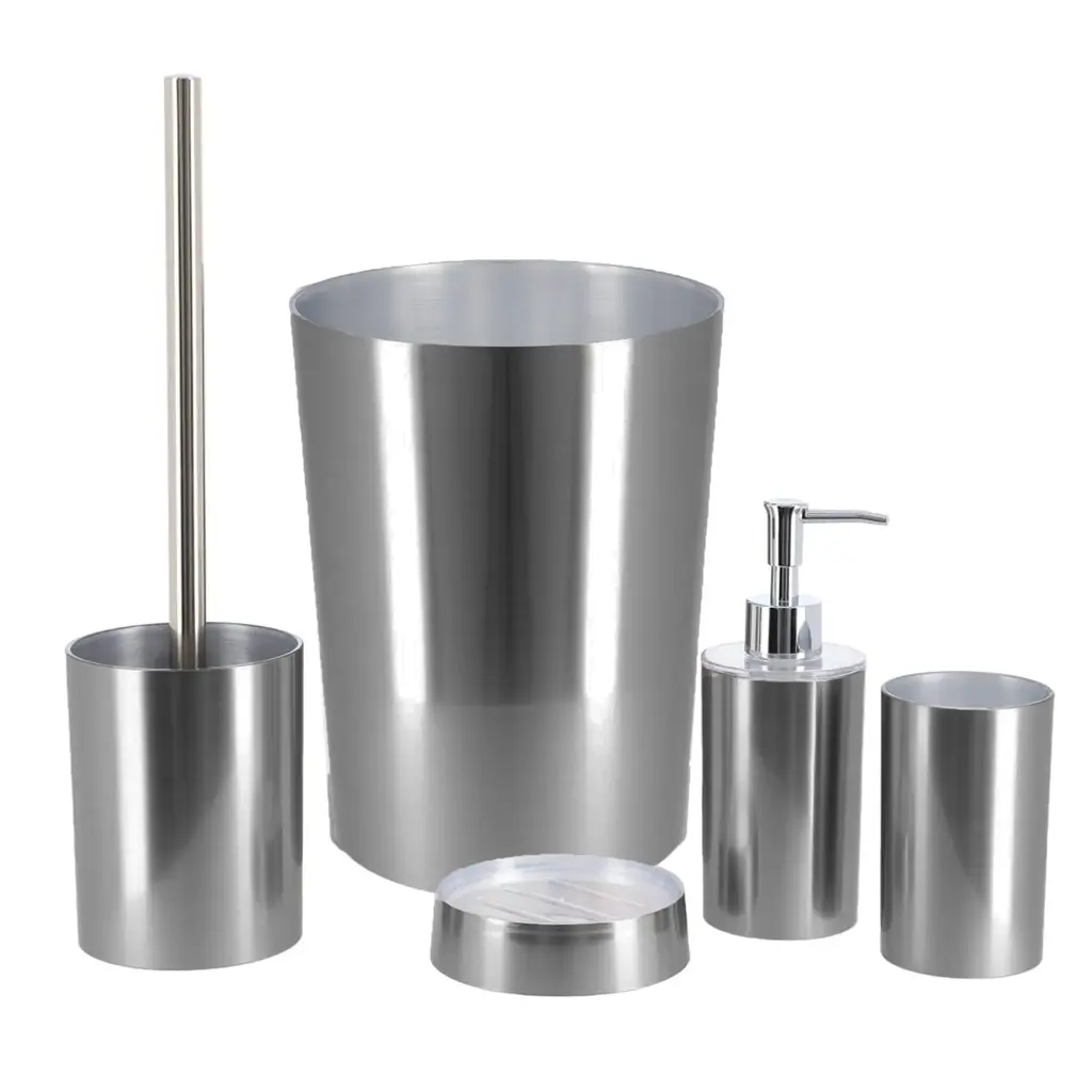 Bath Bliss Trash Can, Toilet Brush And Plunger 3 Piece Bathroom Set - 3 Piece Set - Stainless Steel
