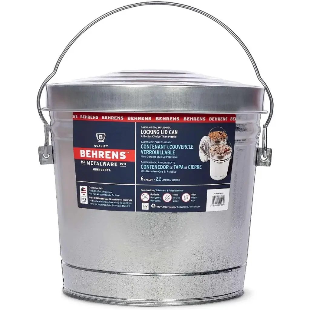 Behrens 6 Gallon Rust-proof Steel Locking Lid Trash Can(6 Gal) Made In Usa