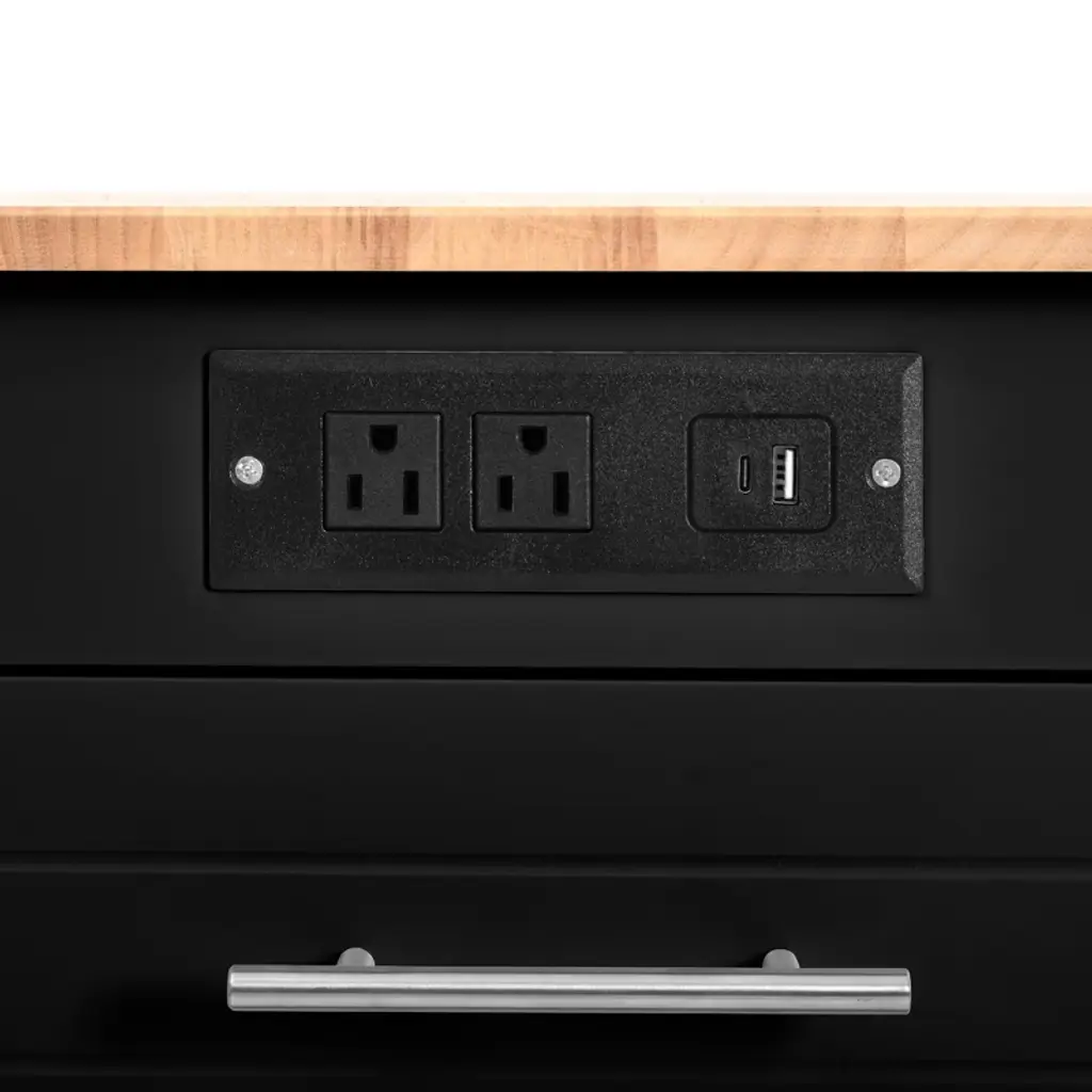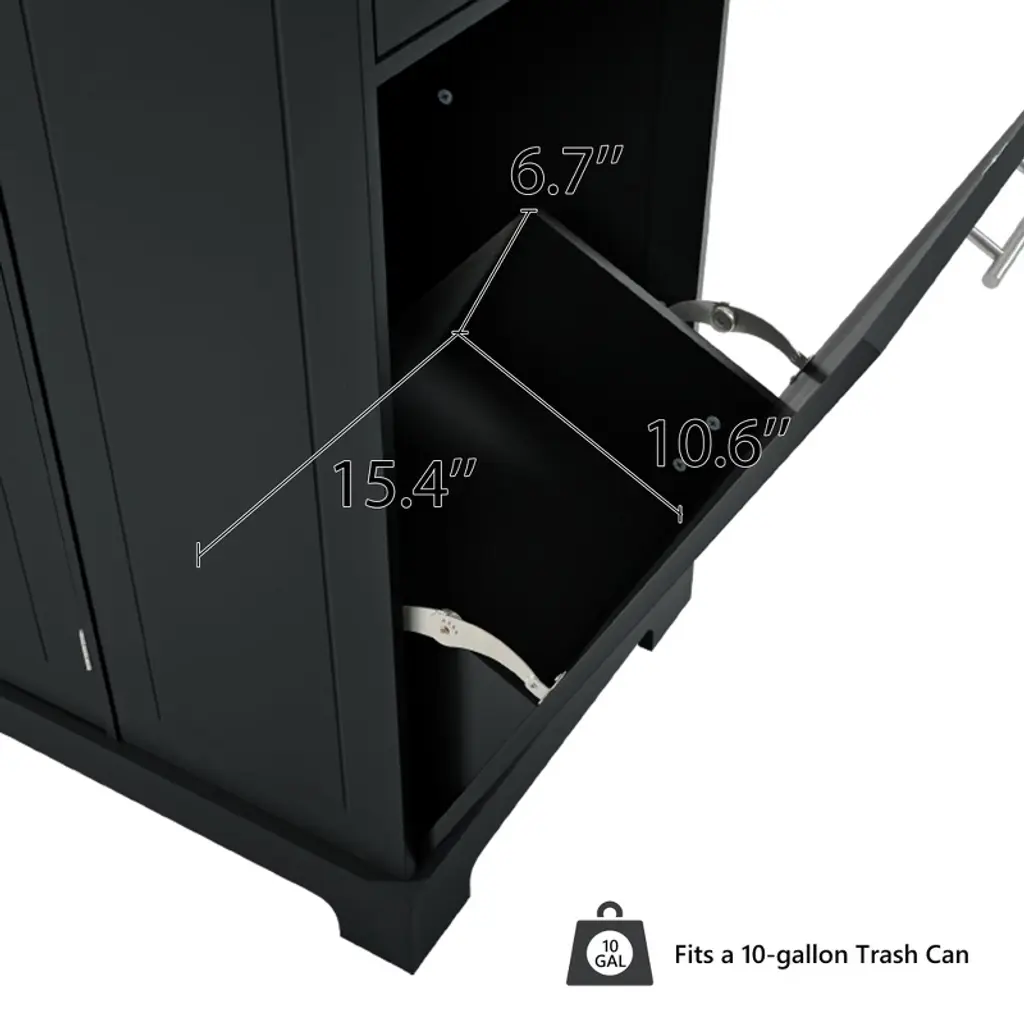 Introducing the Kitchen Island with Trash Can Storage Cabinet – the perfect blend of functionality and style for any kitchen! This island not only conceals a 10-gallon trash can but also offers ample storage with its three spacious drawers and three open side shelves designed for easy access to your spices, bottles, and cooking essentials. With a stunning two-tone design and stylish fluted drawers, this island elevates your kitchen decor while providing practical solutions for organization. Enhanced by a built-in power outlet featuring two AC outlets, a USB port, and a Type-C port, it caters to all your kitchen appliance needs. Experience convenience in cooking and entertaining with this must-have kitchen feature.