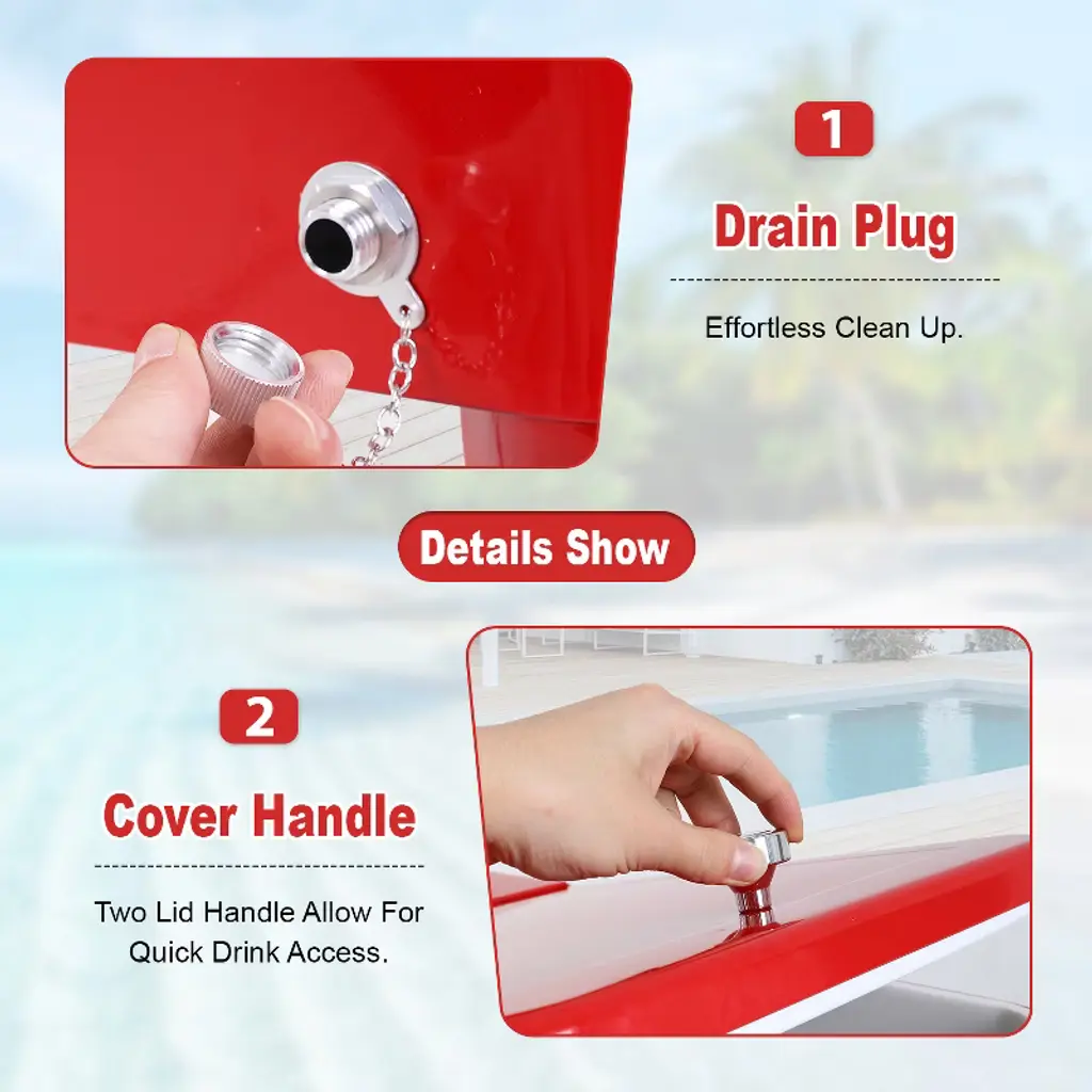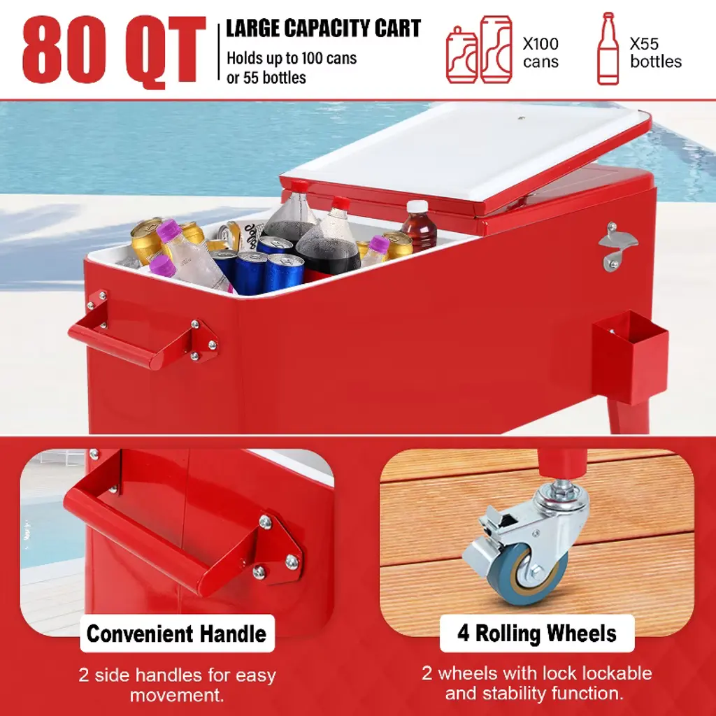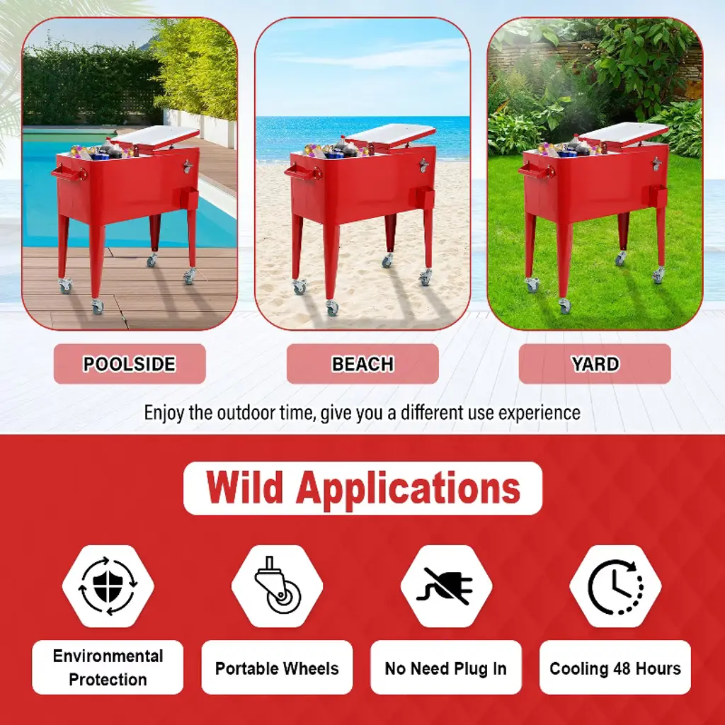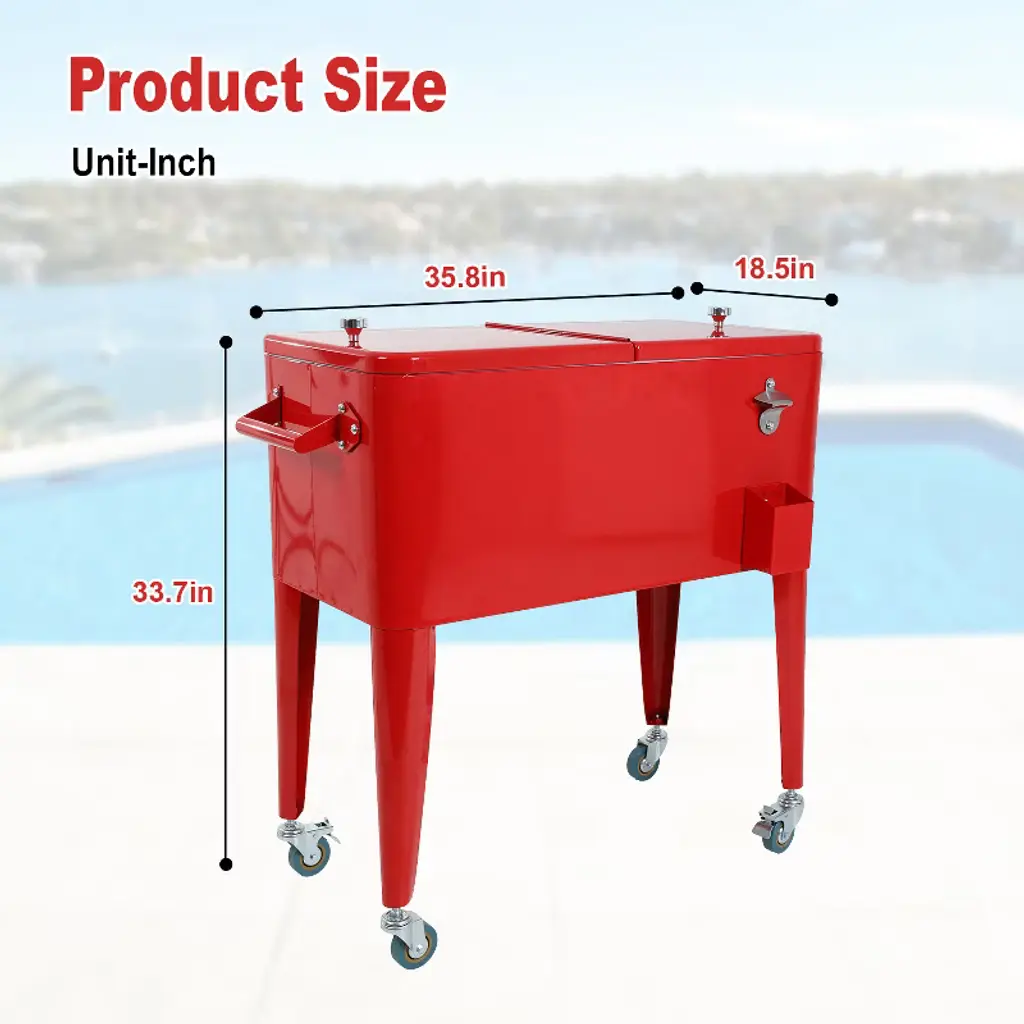 Bestmassage Cooling Bin Outdoor Rolling Cooler Metal Ice Chest With Cool Function, Red